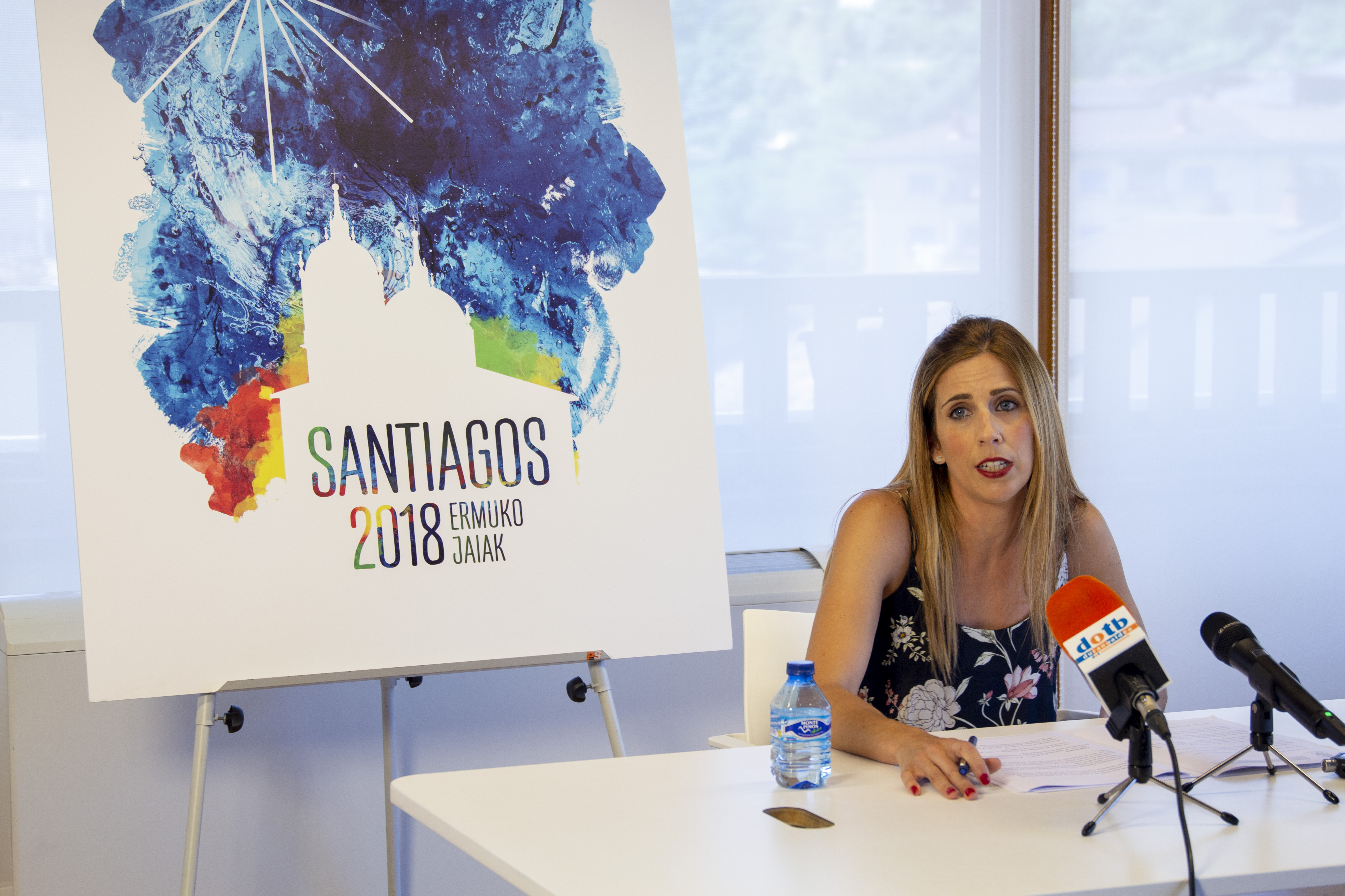 La concejala de Cultura, Igualdad y Euskera Beatriz Gámiz ha presentado este lunes el programa para las fiestas patronales de Santiago 2018, que arranca el próximo sábado 14 de julio dando comienzo a catorce días de diversión.