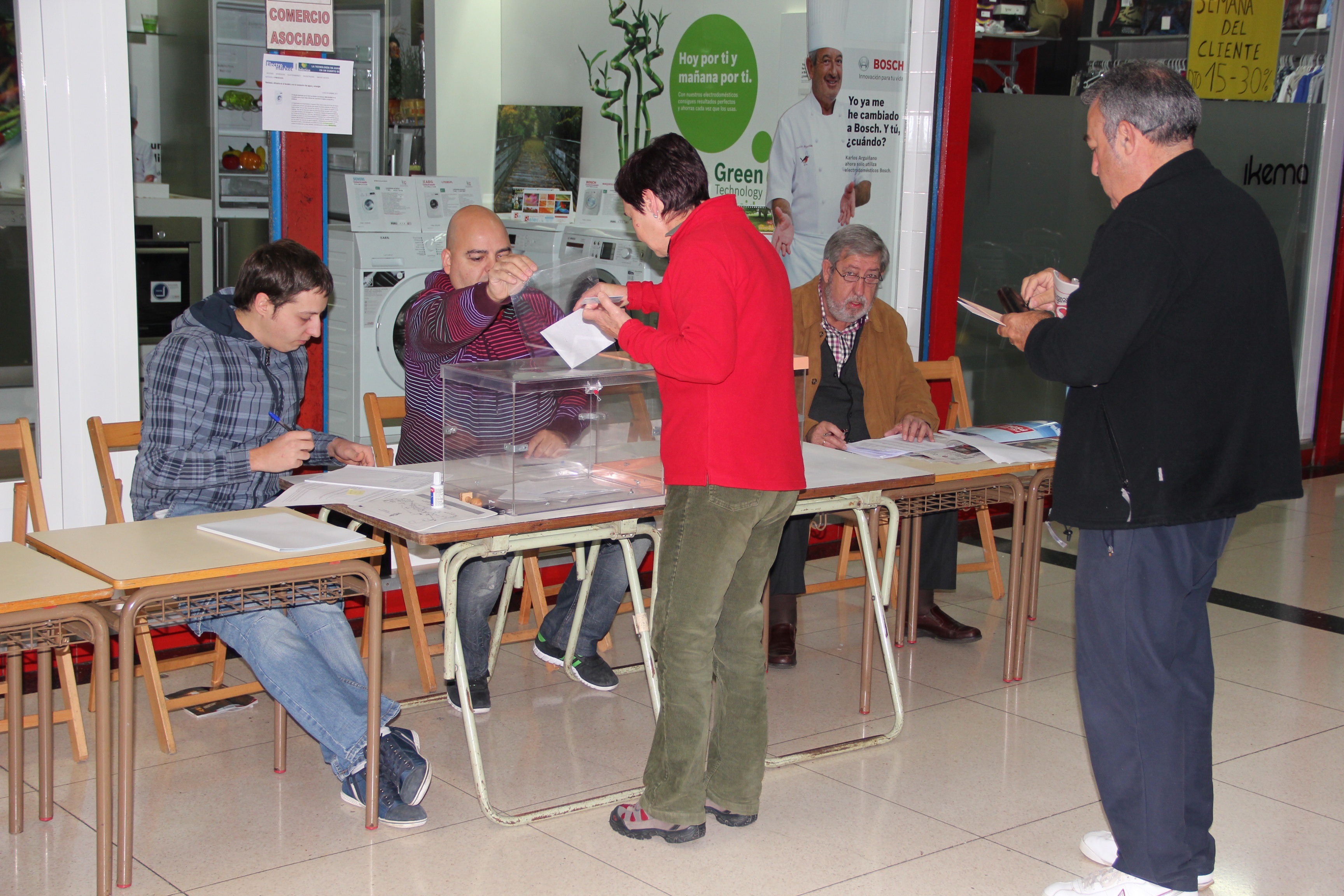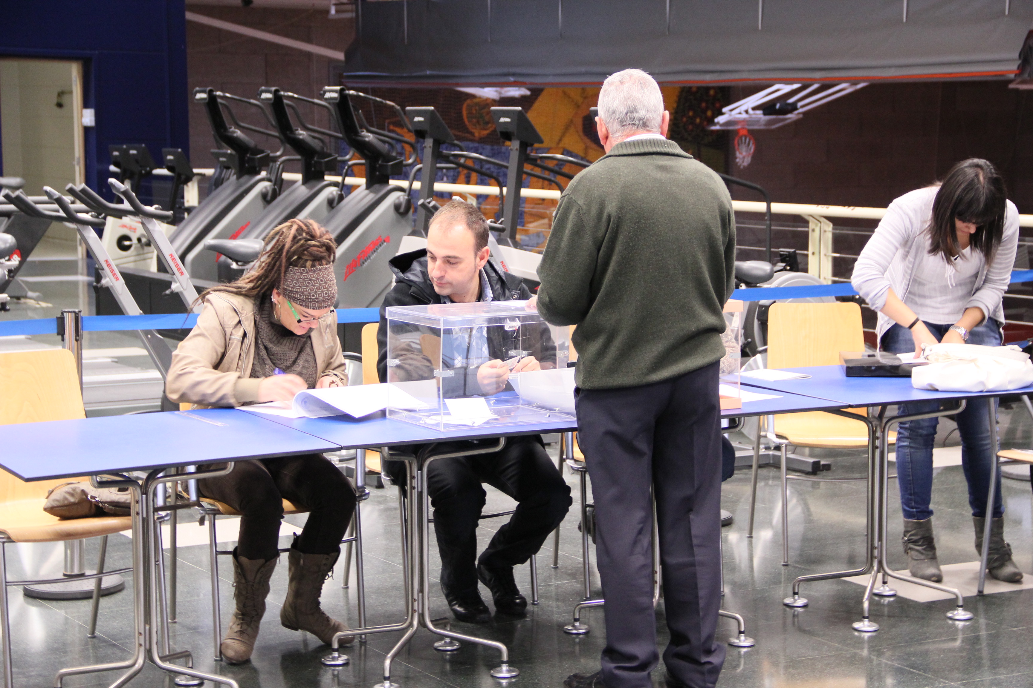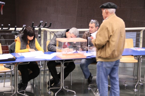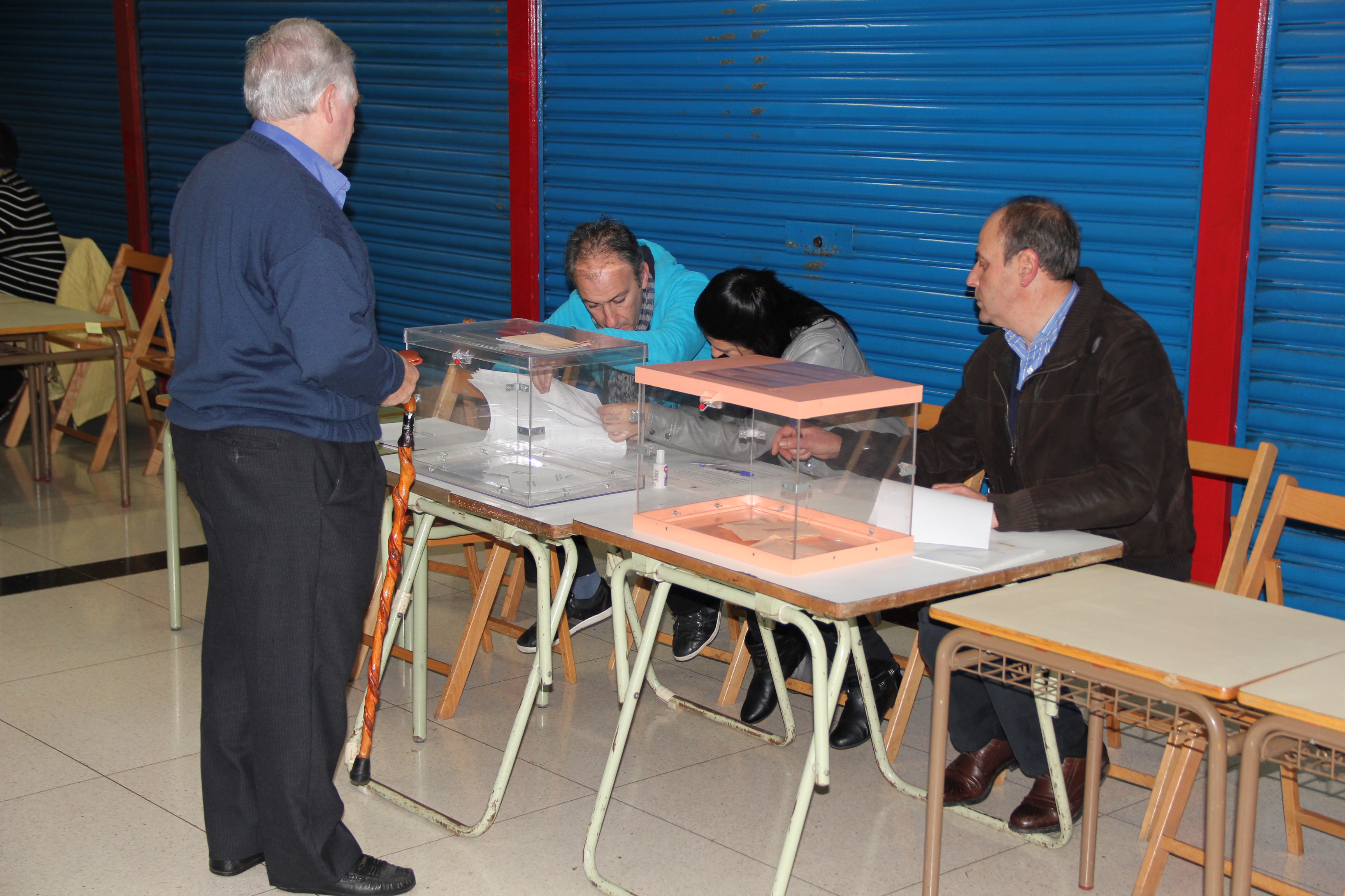 En las fotografías se pueden ver a las personas votantes más madrugadoras en los colegios del Polideportivo Miguel Ángel Blanco y de la Plaza del Mercado.