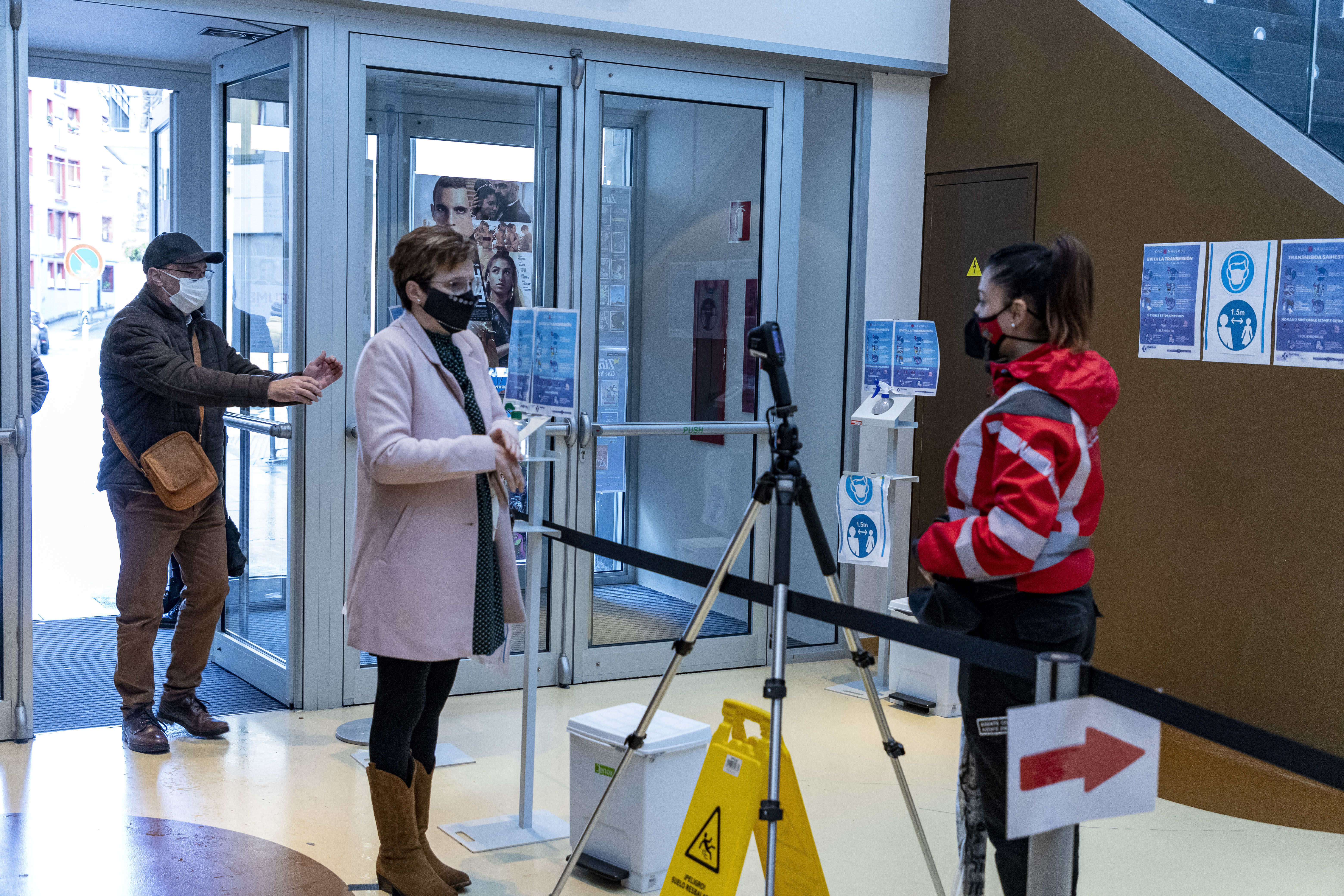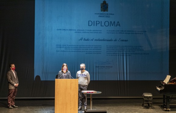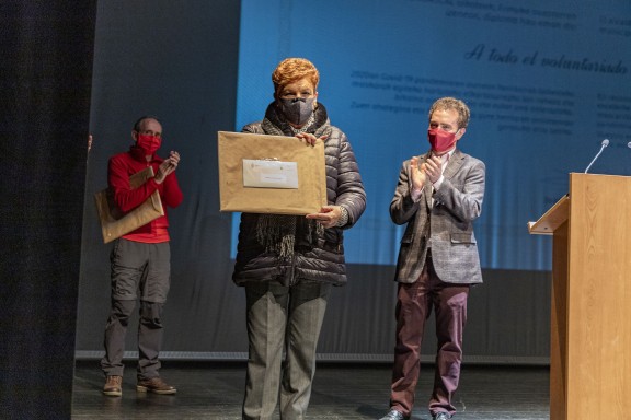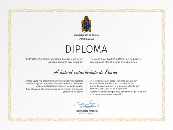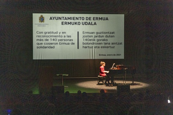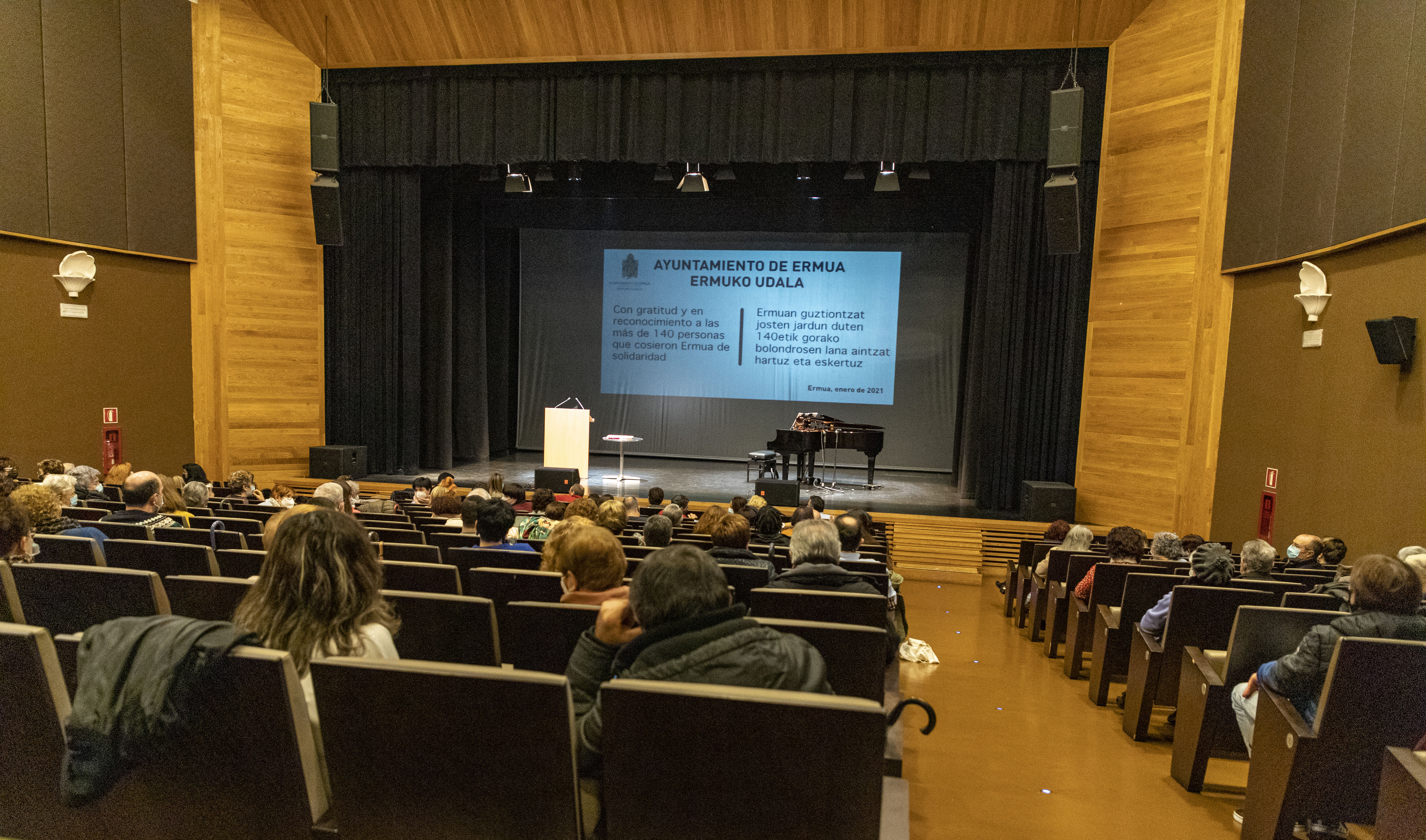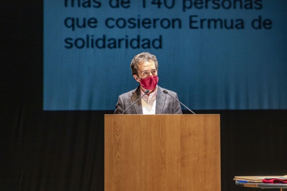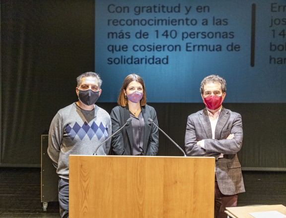 El ayuntamiento y la Corporación de Ermua homenajearon a mediodía de ayer al colectivo de personas voluntarias que en abril del pasado año durante el confinamiento domiciliario cosieron las mascarillas impermeables artesanas que posteriormente y tras su desinfección se distribuyeron gratuitamente a la población. Una propuesta surgida de en el seno de la parroquia local, que sumó muchas adhesiones y contó con la Cruz Roja para el reparto.