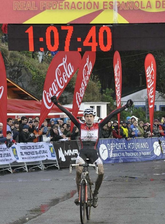 El ciclista Aitor Hernández (Ermua-Orbea) corona una temporada de ensueño con el Campeonato de España de Ciclocross, disputado ayer domingo en el concejo asturiano de Navia. El ermuarra se hizó con el primer lugar del podio tras imponerse a Egoitz Murgoitio (Grupo Hirumet Taldea) y a Javier Ruiz de Larrinaga (MMR-Spiuk) en las ocho vueltas que se disputaron sobre un circuito compuesto por 200 metros de asfalto, 200 metros de arena, y un grueso de 2,6 kilómetros de tierra y prado. Hernández ha ganado su primer campeonato profesional y redondea la presente temporada al conseguir su décimo séptima victoria.
