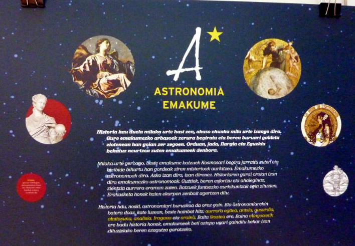 La Casa de la Mujer de Ermua acoge una interesante exposición que nos presenta el vínculo existente entre la Astrofísica y el papel desarrollado por las mujeres en dicha ciencia. La exposición lleva por titulo "con A de Astrónomas" y está cedida por la Facultad de Ciencias y Tecnología de la Universidad del País Vasco. La muestra estará expuesta hasta el próximo día 22 de octubre. La entrada es libre y gratuita.