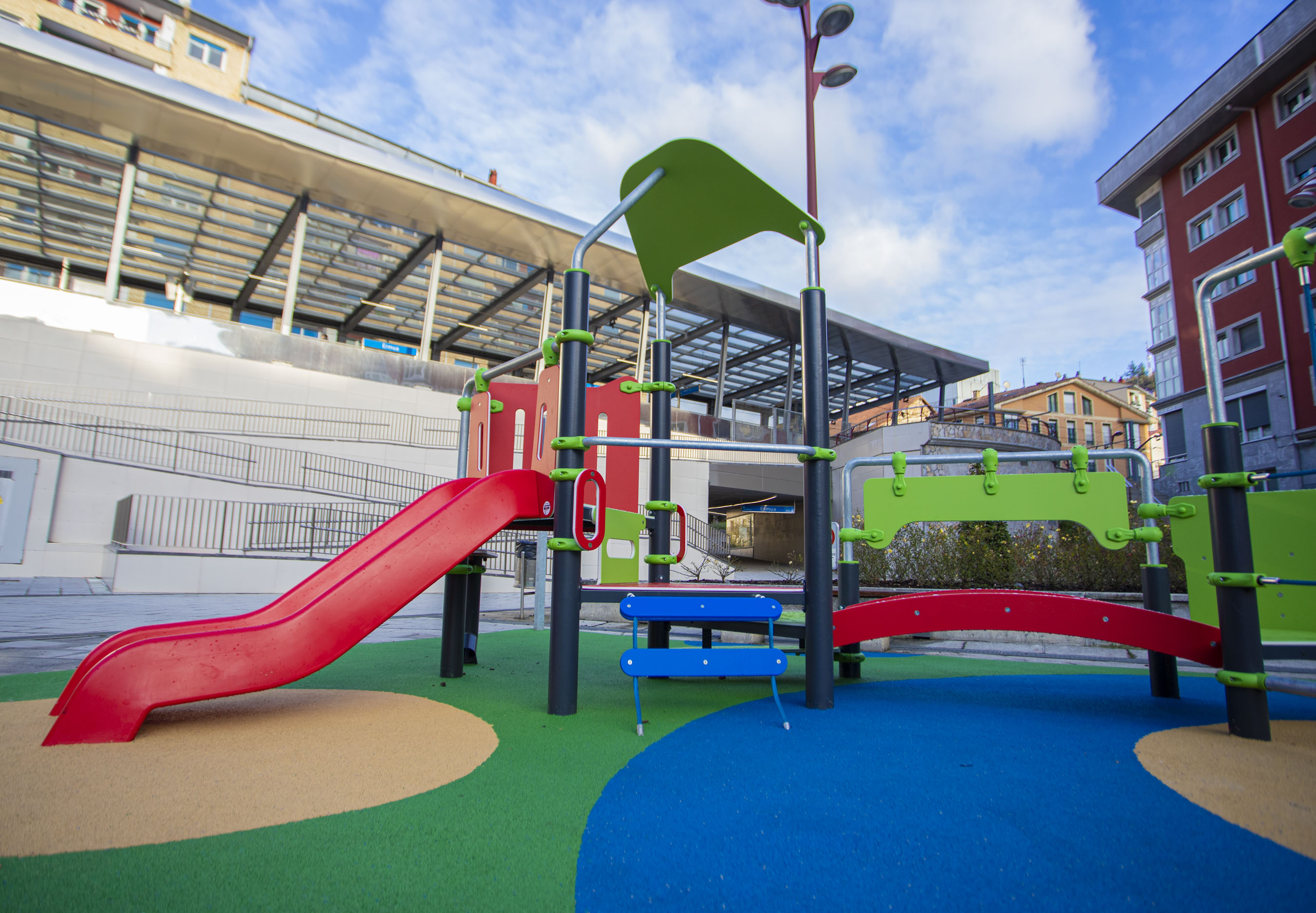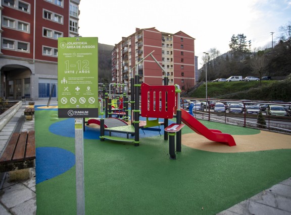 El Ayuntamiento de Ermua ha instalado una nueva zona de juegos a la altura del número 1 de la Avenida Gipuzkoa, en la plazoleta entre la parada de Bizkaibus y la estación de tren. Se trata de un parque diseñado para niños/as de entre 1 y 12 años, con diversos elementos para disfrute de todas las personas usuarias.