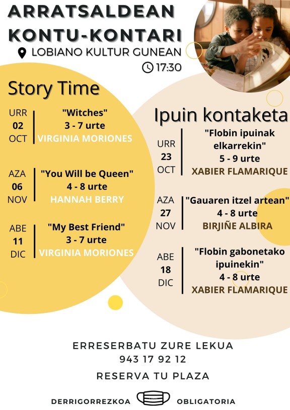 El primer sábado de octubre dará comienzo la nueva temporada de Cuentacuentos para el público infantil que organiza la biblioteca municipal. Esta actividad, que tiene lugar dos sábados al mes en Lobiano Kultur Gunea, pretende acertar el mundo de los cuentos y animar a la lectura desde la transmisión oral y la emoción.