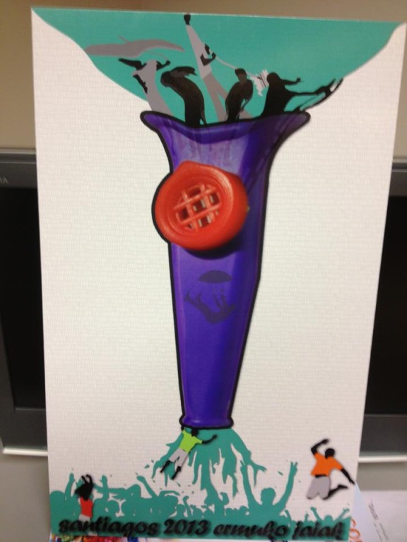 Cartel ganador del concurso de Santiagos 2013 creado por Lorea Perosanz y Joseba Aranzabal.