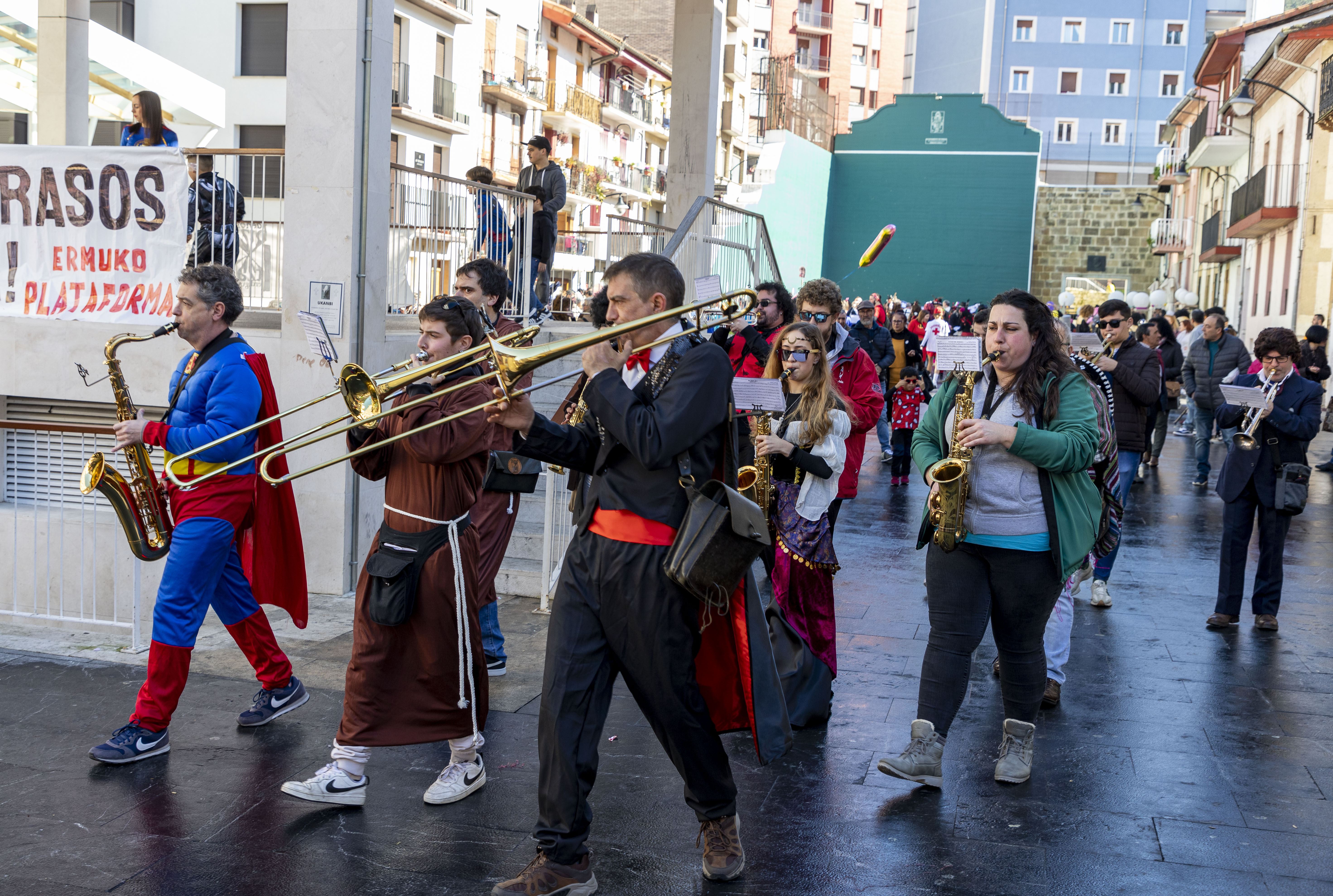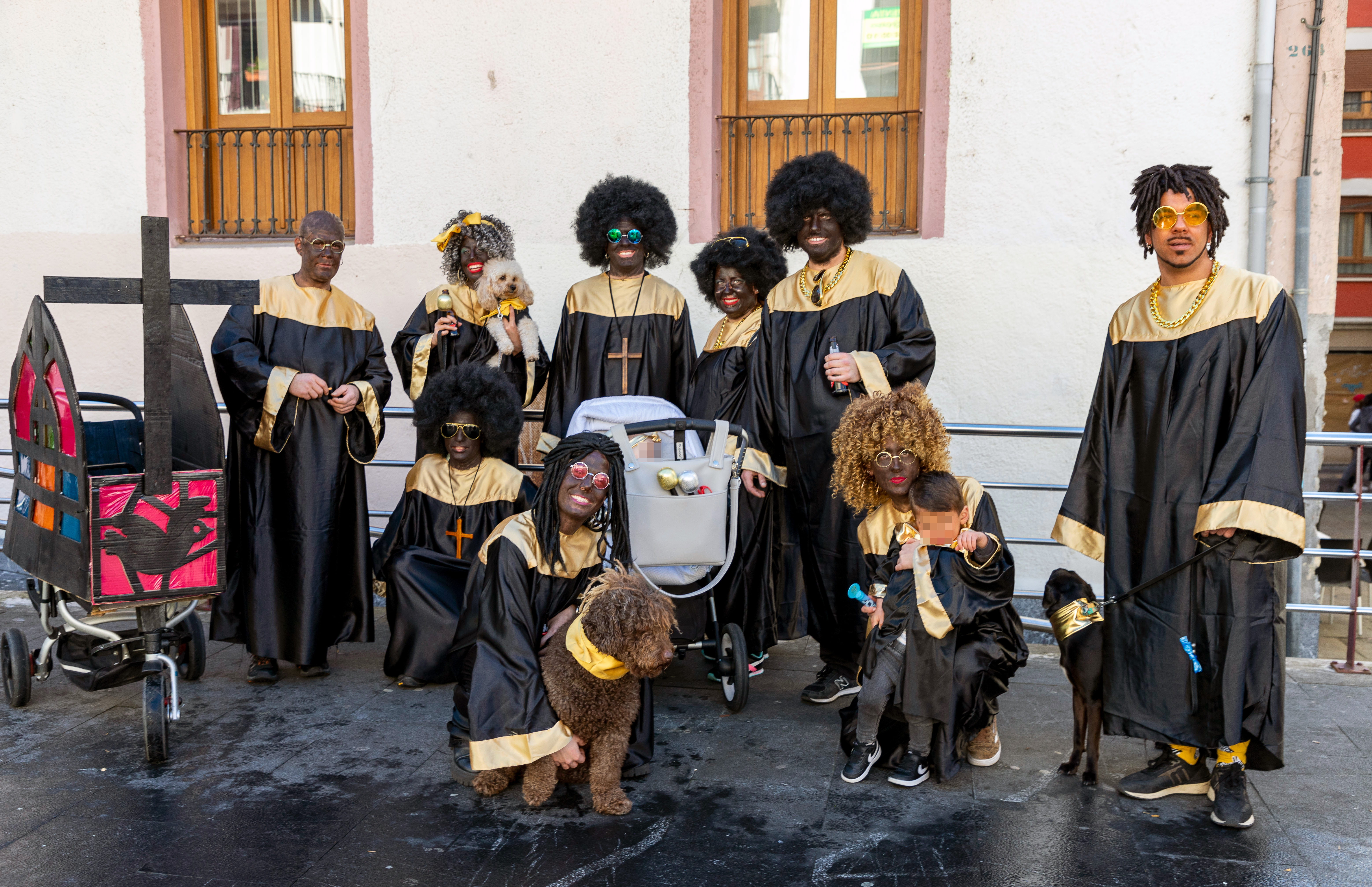 El sábado de Carnaval de Ermua fue muy colorido y participativo. Muchas fueron las personas que se animaron a disfrazarse en grupo, en pareja o de forma individual. El buen tiempo acompañó a lo largo de la jornada. En el concurso del departamento de cultura y en el desfile participaron una docena. El premio fue para el gran grupo de Vudú.