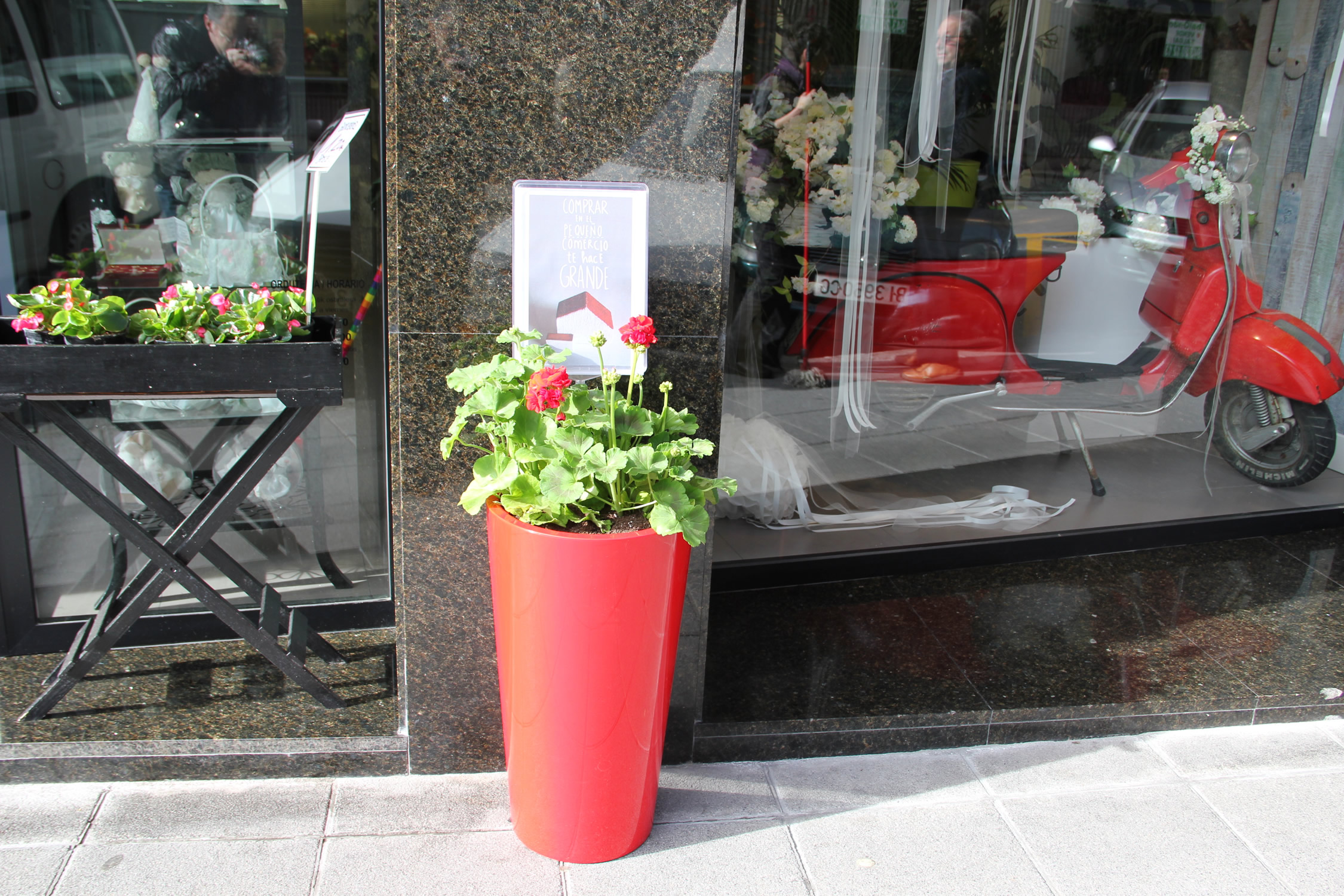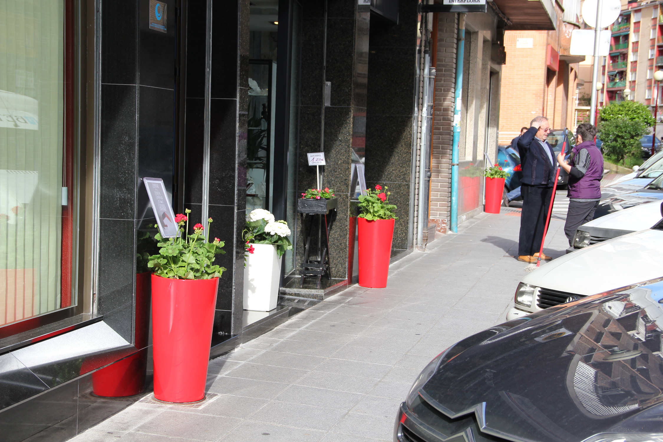 Las calles que llevan al barrio San Pelayo e integran las calles adyacentes a éste lucen muy atractivas. Diputación, la Travesia Etxarte y Zearkale desbordan color y frescura, acorde con la estación primaveral en la que nos encontramos. Establecimientos de hostelería y comercio han puesto en marcha una iniciativa para hacer más visible, si cabe, el alto número de establecimientos del tercer sector que trabajan y prestan servicio en esa zona. Desde ayer lucen ante sus locales unos llamativos tiestos de un intenso rojo con unas plantas de geranio en flor del mismo color. El adorno lleva además un cartel en el que puede leerse la siguiente leyenda: “Comprar en el pequeño comercio, te hace grande”.