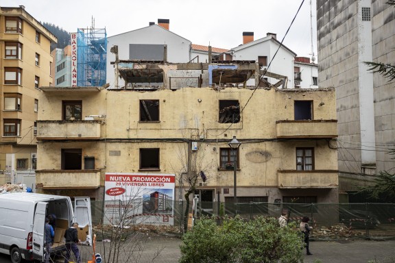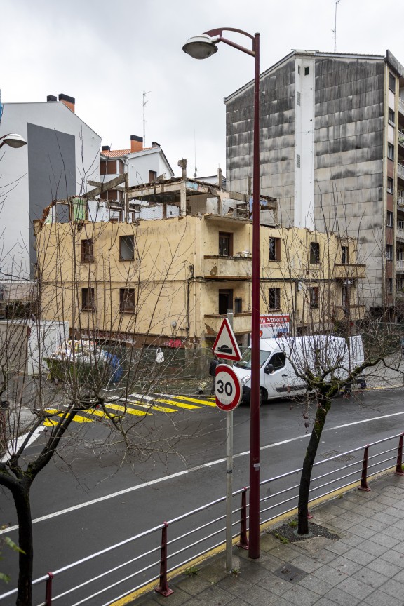 La promotora ‘Zubiaurre 2018, S. Cooperativa’ está terminando de derribar el edificio número 24 de la calle del mismo nombre, principal artería de nuestra localidad. Espacio en el que construirán 28 viviendas libres, de distintos tamaños y tipologías –pisos y dúplex-. Será un edificio de siete alturas con cuatro pisos por planta, trasteros y garaje.