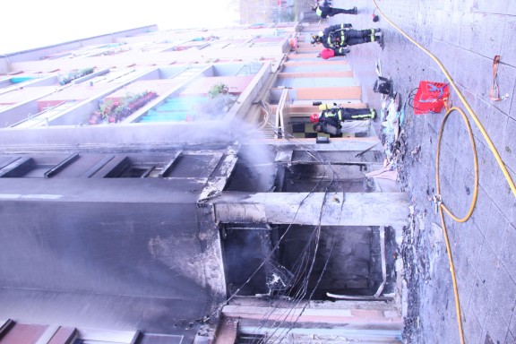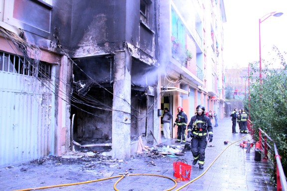 Fotografías del incendio de un local en Ongarai