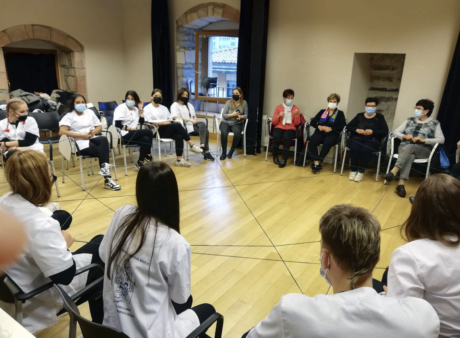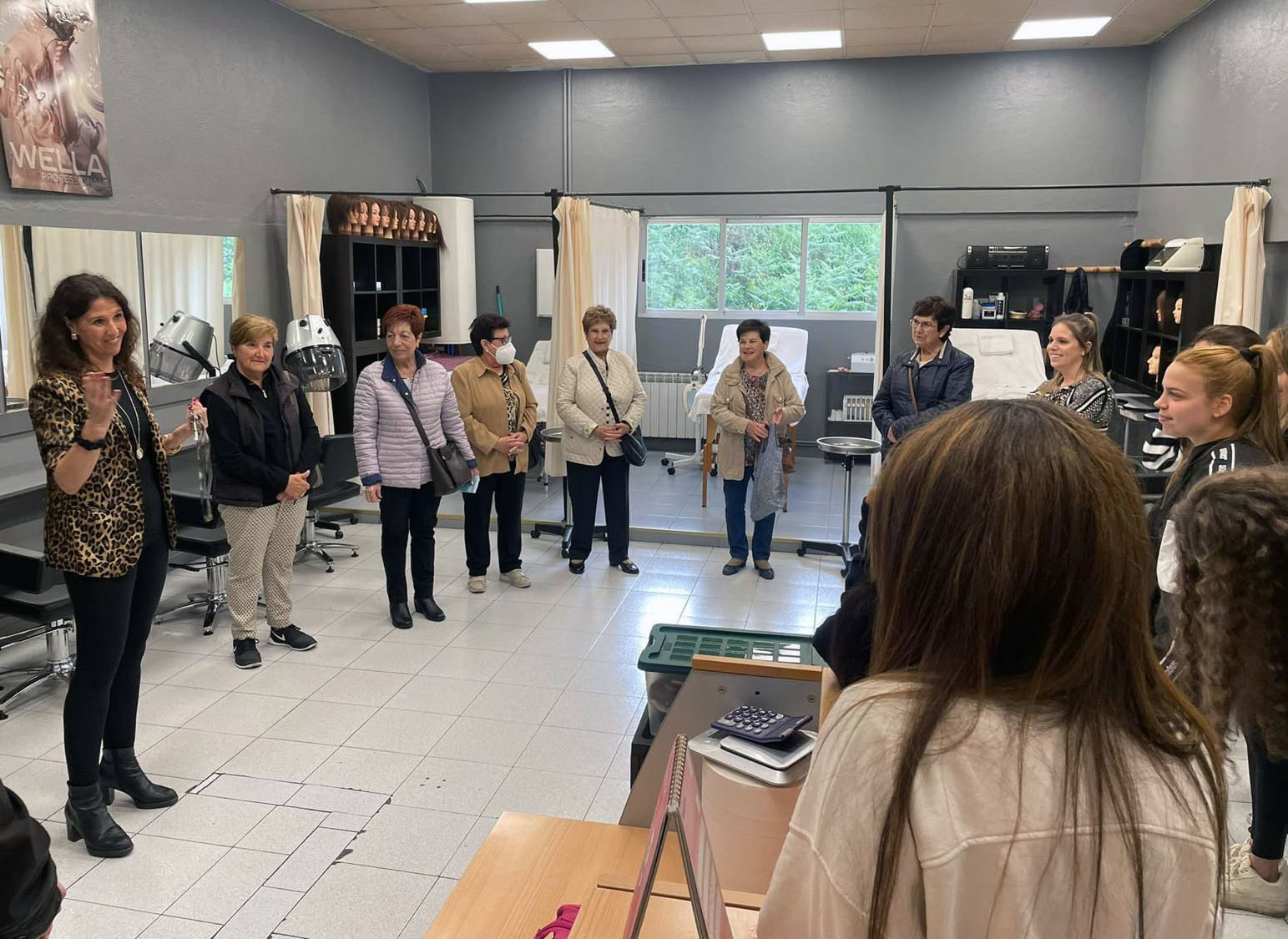 El alumnado de la Especialidad de Peluquería e Imagen Personal del Instituto de Formación Profesional Básica de Ermua-Mallabia y el grupo de personas mayores participantes en el proyecto solidario ‘Dame tu mano’, han despedido la edición con una visita a las instalaciones del instituto.
