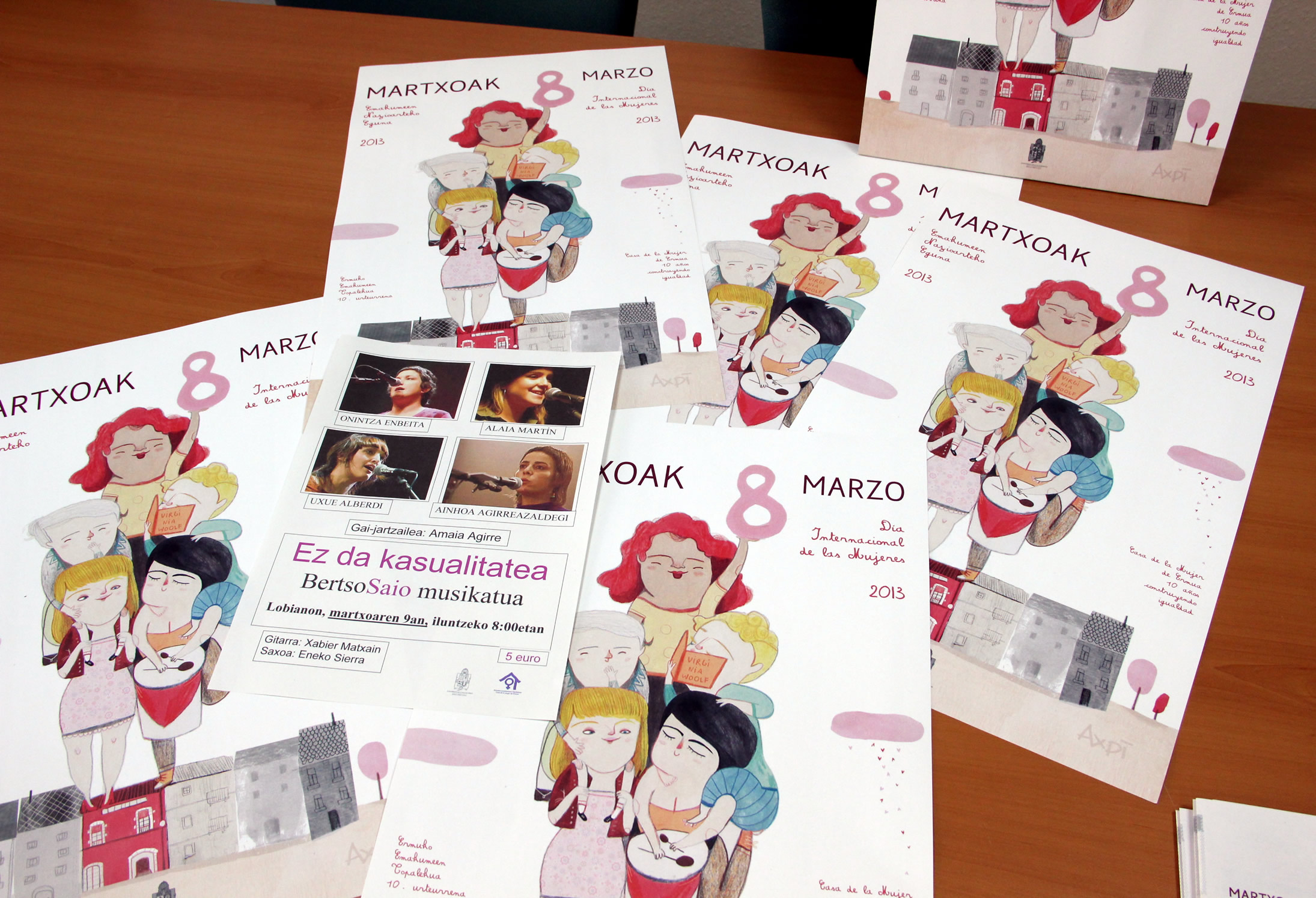 El Departamento de Igualdad y el Consejo de la Mujer han presentado el programa de actividades para conmemorar un año más el Día Internacional de las Mujeres. Un programa que este año agrupa dos importantes conmemoraciones. La jornada del 8 de marzo y el décimo aniversario de la apertura de la Casa de la Mujer en nuestra localidad. La Casa de la Mujer de Ermua abrió sus puertas por primera vez el 6 de marzo de 2003. Esta Casa ha supuesto un hito, se ha convertido en referente como recurso para impulsar las políticas municipales de igualdad, con la participación activa de la ciudadanía, y no solo de las mujeres. El lema que se ha elegido para esta celebración es "Casa de la Mujer: diez años construyendo igualdad". / Aukera Berdintasun Sailak eta Emakumearen Udal Kontseiluak Emakumeen Nazioarteko Eguna ospatzeko egitaraua aurkeztu dute aurten ere. Aurtengoan egitarauak bi ospakizun garrantzitsu uztartzen ditu: Martxoaren 8a eta Emakumearen Topagunea zabaldu zeneko hamargarren urteurrena. Emakumearen Topalekua 2003ko martxoaren 6an ireki zituen ateak eta harrez geroztik zedarri garrantzitsuan bihurtu da, emakumeez gain gainerako herritarron parte hartze aktiboaz bat udalean berdintasuna lortzeko politikak bultzatzeko baliabide garrantzitsua izan delako. Hautatu den leloa ondorengoa da: Emakumearen Topagunea: hamarkada berdintasuna lantzen.