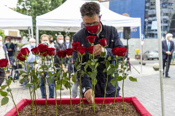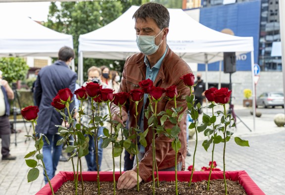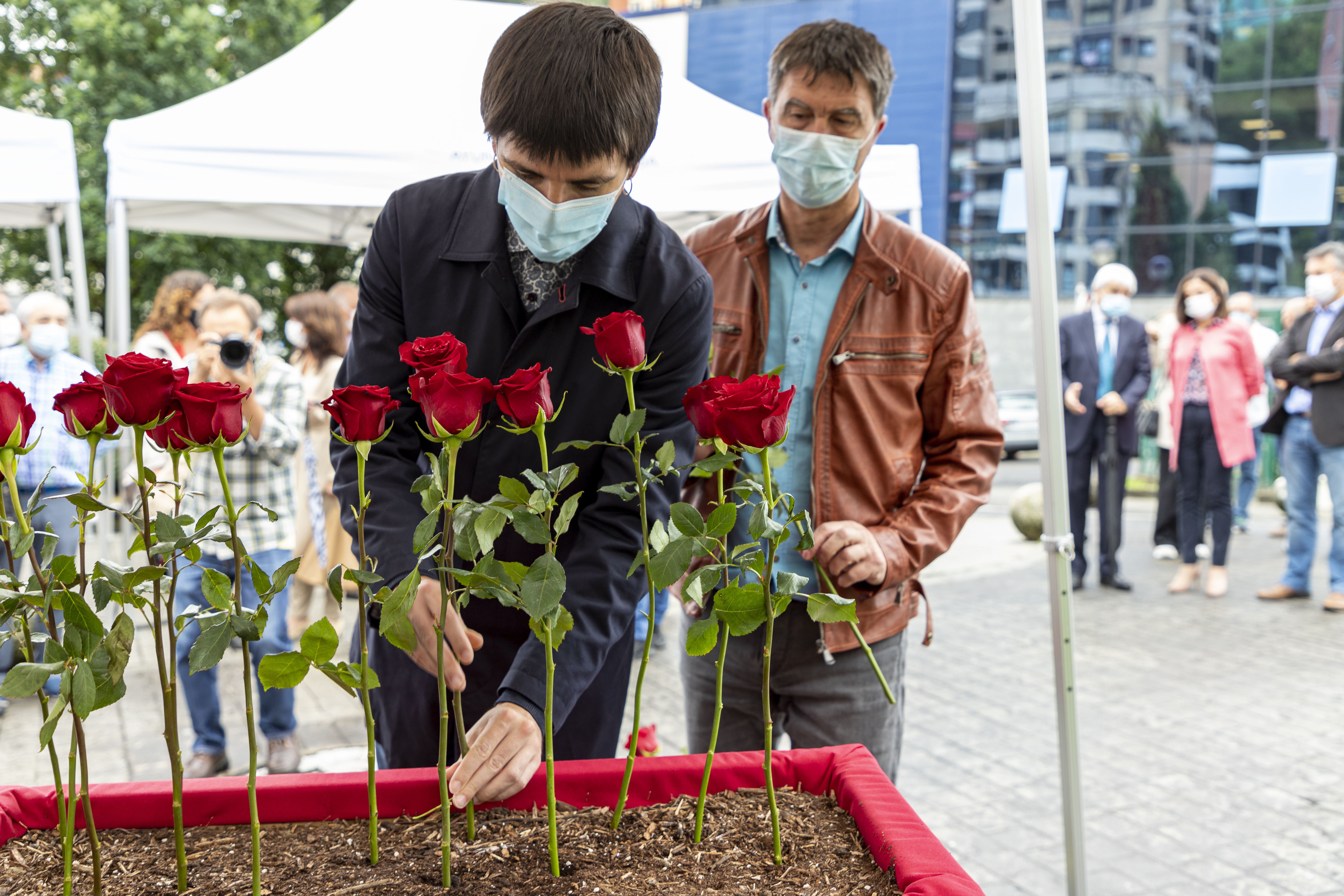 El Ayuntamiento de Ermua ha celebrado un acto institucional en homenaje a Sotero Mazo Figueras y Miguel Ángel Blanco Garrido, los dos vecinos de Ermua asesinados por la banda terrorista ETA hace ya más de dos décadas. El monolito en recuerdo a las víctimas del terrorismo ha acogido el evento este martes 13 de julio, al que han asistido corporativos/as municipales de todos los grupos políticos salvo el Partido Popular.