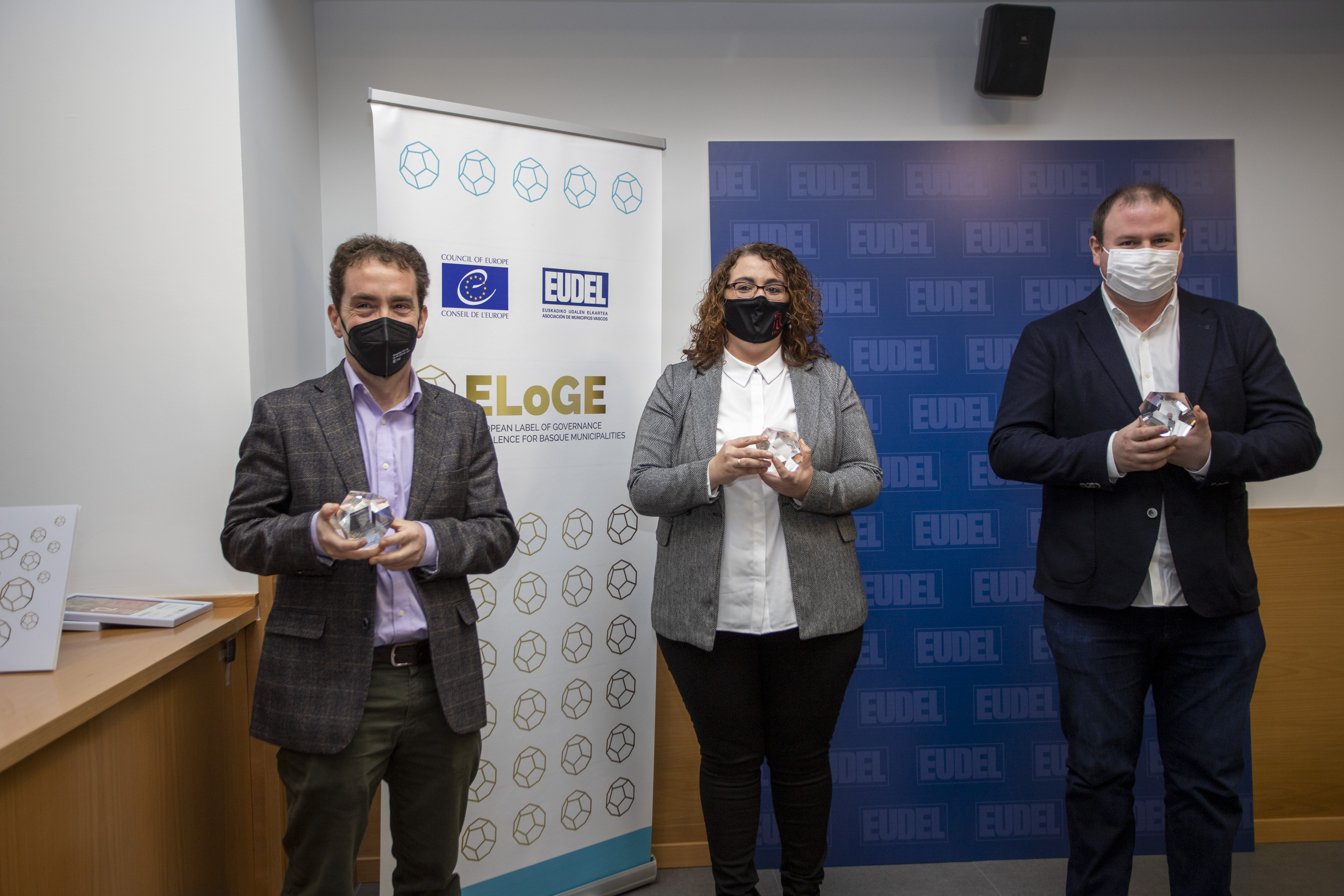 El ayuntamiento de Ermua ha sido reconocido por segunda vez hoy con el Sello Europeo de Excelencia en Gobernanza, tras haberlo recibido inicialmente en el año 2017. El alcalde Juan Carlos Abascal ha recogido esta mañana en un acto en Bilbao el distintivo del Sello ELoGE 2020, un dodecaedro de cristal, otorgado por EUDEL y el Consejo de Europa. Junto a nuestra localidad también han recibido el distintivo Irún y Laudio. Nuestro municipio y el de Irún renovamos ese reconocimiento europeo en tanto que el alavés se convierte en la primera localidad en tenerlo de su territorio. Con la incorporación de Laudio ocho son los ayuntamientos vascos que contamos con el máximo distintivo de calidad a nivel europeo para gobiernos locales.