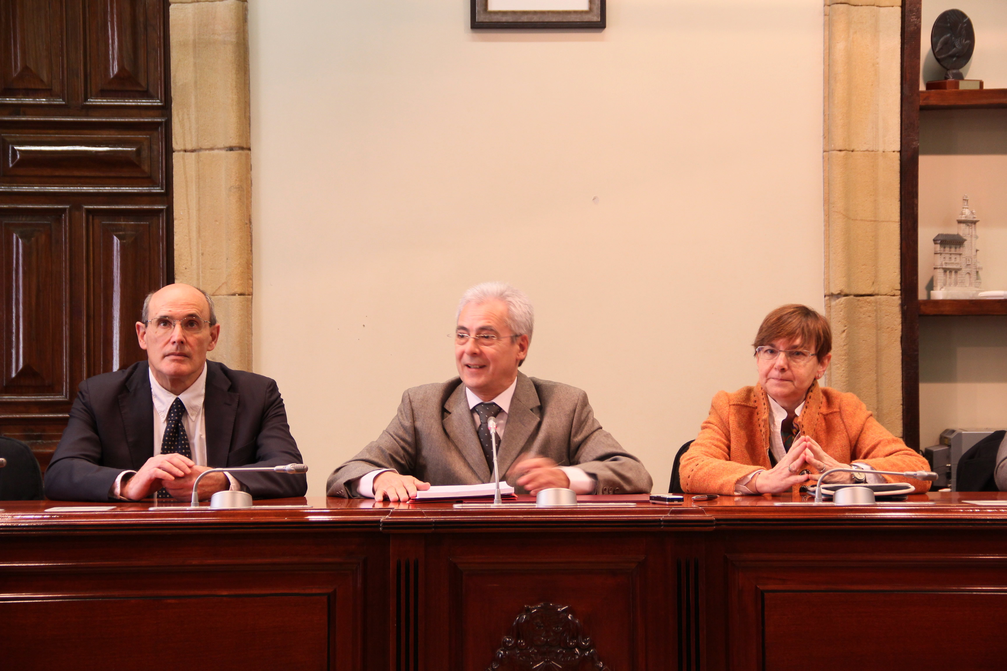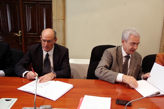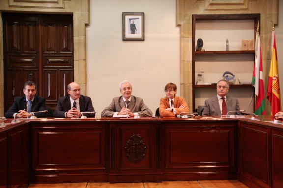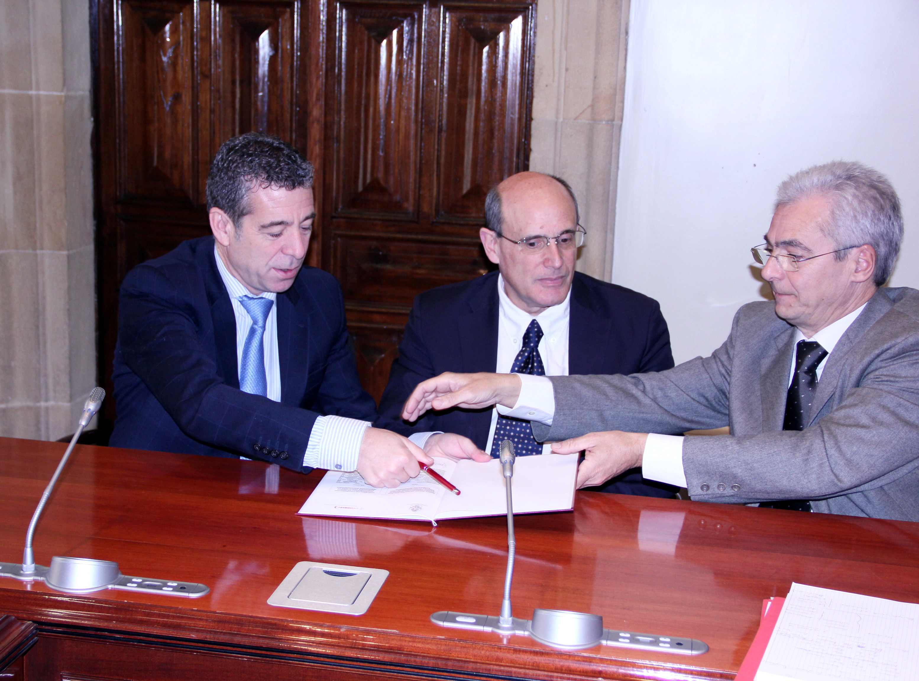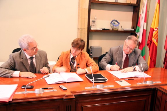 Acto de firma de entre la Fundación Vasca para la Innovación Sociosanitaria y el Ayuntamiento de Ermua para que la primera fije su sede en la localidad