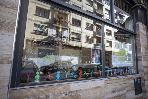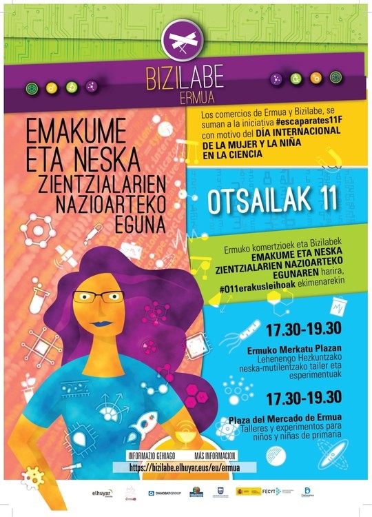 Los escaparates ermuarras lucen obras de mujeres científicas