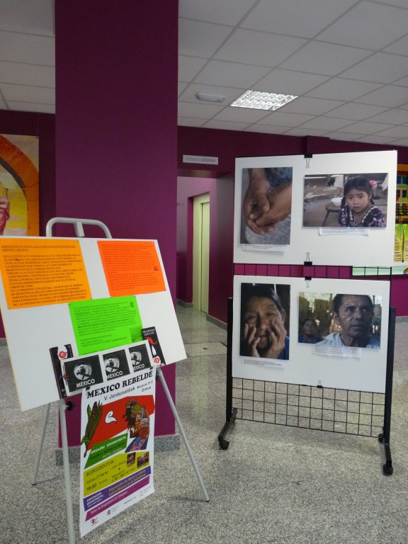 Exposición de fotografías y materiales de las Jornadas México rebelde en el hall de la Biblioteca de Ermua