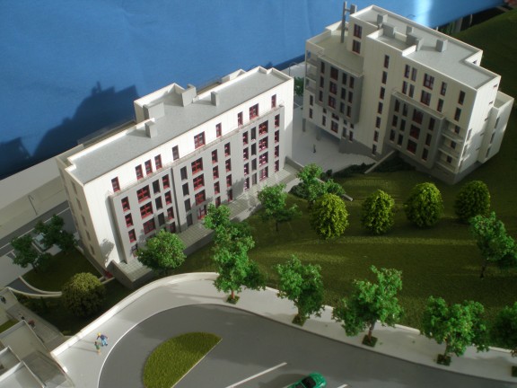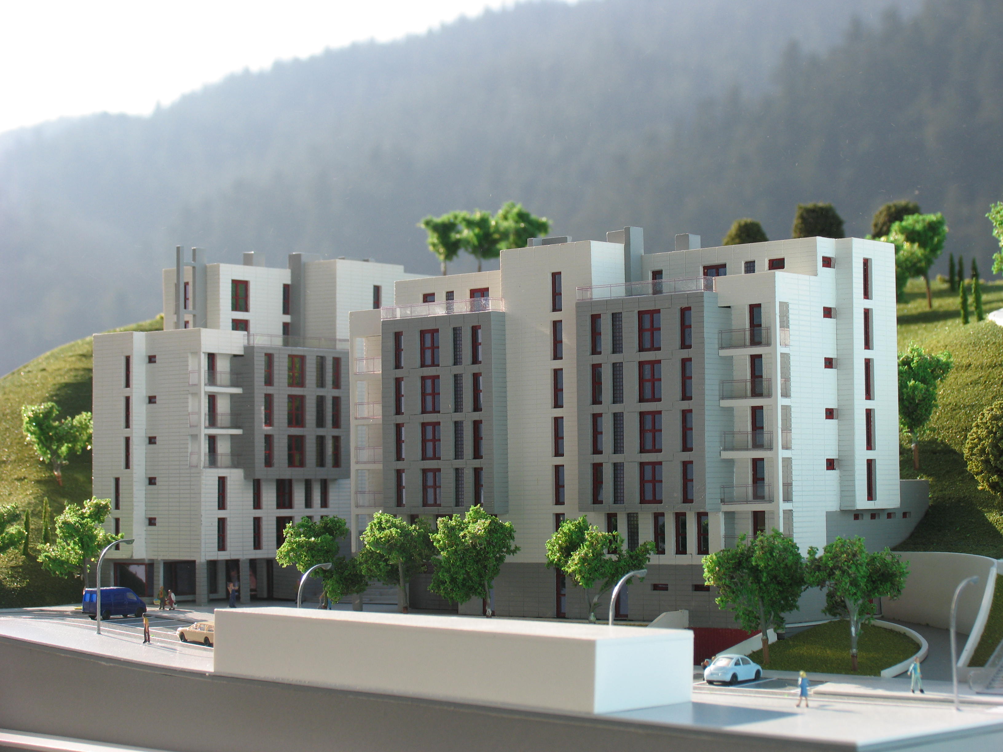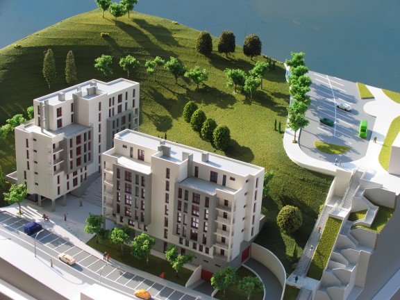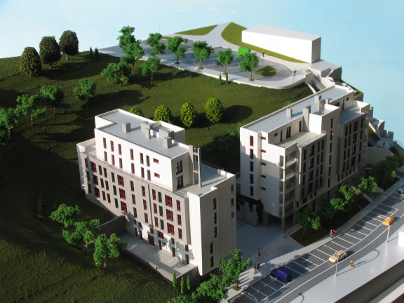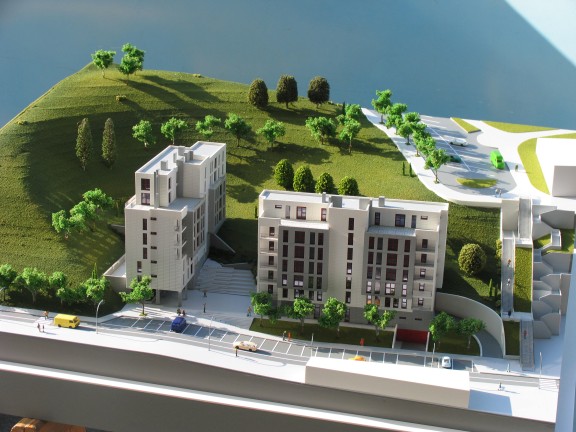 Fotografías de la maqueta e infografías de la promoción de viviendas de Jaureguizar.