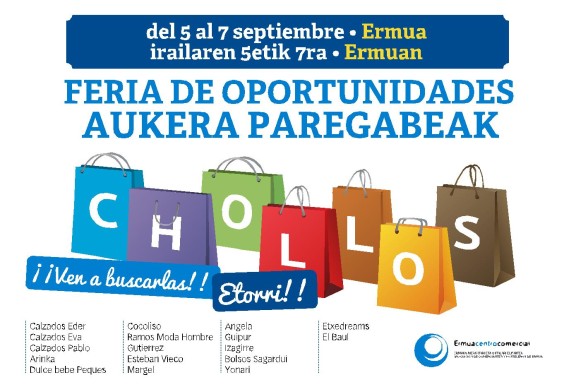 Tres únicos días con descuentos y ofertas en el comercio local de Ermua. Desde el jueves hasta el sábado de la semana próxima nueva feria de oportunidades de los productos de la temporada de verano. La ACHE ha organizado una nueva edición de la feria de oportunidades que se desarrollará entre el 5 y el 7 de septiembre. La propuesta de ofrecer productos de temporada con descuentos se realizará en cada comercio participante en la iniciativa y en el horario habitual de la tienda. Será la última y la mejor oportunidad de llevarse a casa ese artículo a un precio excepcional.
