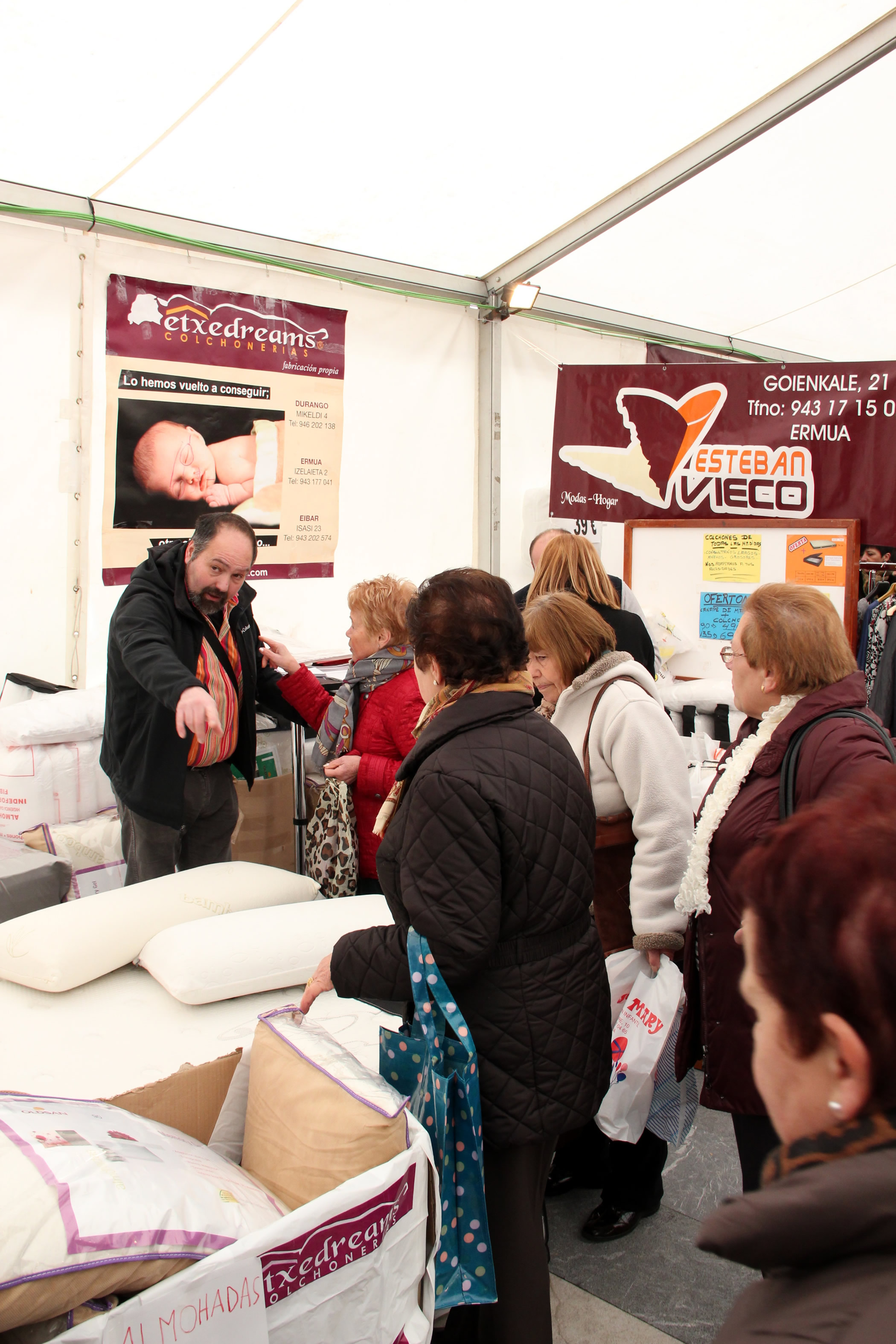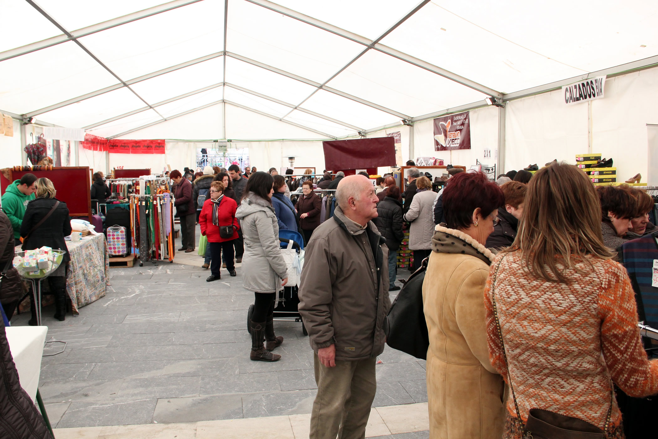 Ermua acoge desde hoy una nueva edición de la feria comercial de oportunidades. El evento se desarrollará en una gran carpa instalada en la plaza Cardenal Orbe de hoy jueves al sábado noche. La misma está organizado por la Asociación de Comerciantes y Hosteleros de Ermua (ACHE) y cuenta con la colaboración de la corporación local y del Gobierno Vasco. En la feria participan un total de 12 comercios asociados que ofrecen sus productos de esta temporada de invierno que está apunto de finalizar. La feria reúne productos de textil y moda, joven, infantil, recién nacidos/as, mercería y complementos. Horario de la feria: jueves y viernes: de 10.00 a13.30 y de 16.30 a 20.00 horas. El sábado: de 10.00 a 14.00 y de 17.30 a 21.00 horas./ Ermuan aukerako eta neguko produktuen azoka hasi da gaur goizean. Edizio berria herriko Orbe Kardinalaren plazan jarri da, karpa handi baten barne eta ostegunetik larunbatera bitartean egongo da zabalik. Azoka Ermuko Merkatari eta Ostalari Elkarteak antolatu du Udalarekin batera eta Eusko Jaurlaritzaren babesaz. Azokara elkarteko kide hamabi denda bildu dira. Horiek guztiak amaitzear dugun negualdiko produktuak eskaintzen dituzte. Azoka horretan ehungintza eta arropak daude, haur, gazte eta jaio berrienak, mertzeria-gaiak eta osagarriekin batera. Azokak bere ordutegi propioa izango du, goizez eta arratsaldez. Aukerako produktuen azokak ondoko ordutegia edukiko du: ostegun eta ostiralean, goizez 10:00etatik ordu 1 eta erdietara eta arratsaldez, lau eta erdietatik zortzietara bitartean. Larunbatean aldiz, goizeko 10etatik arratsaldeko ordu 2etara eta arratsaldez bost eta erdietatik gaueko bederatziak artean.