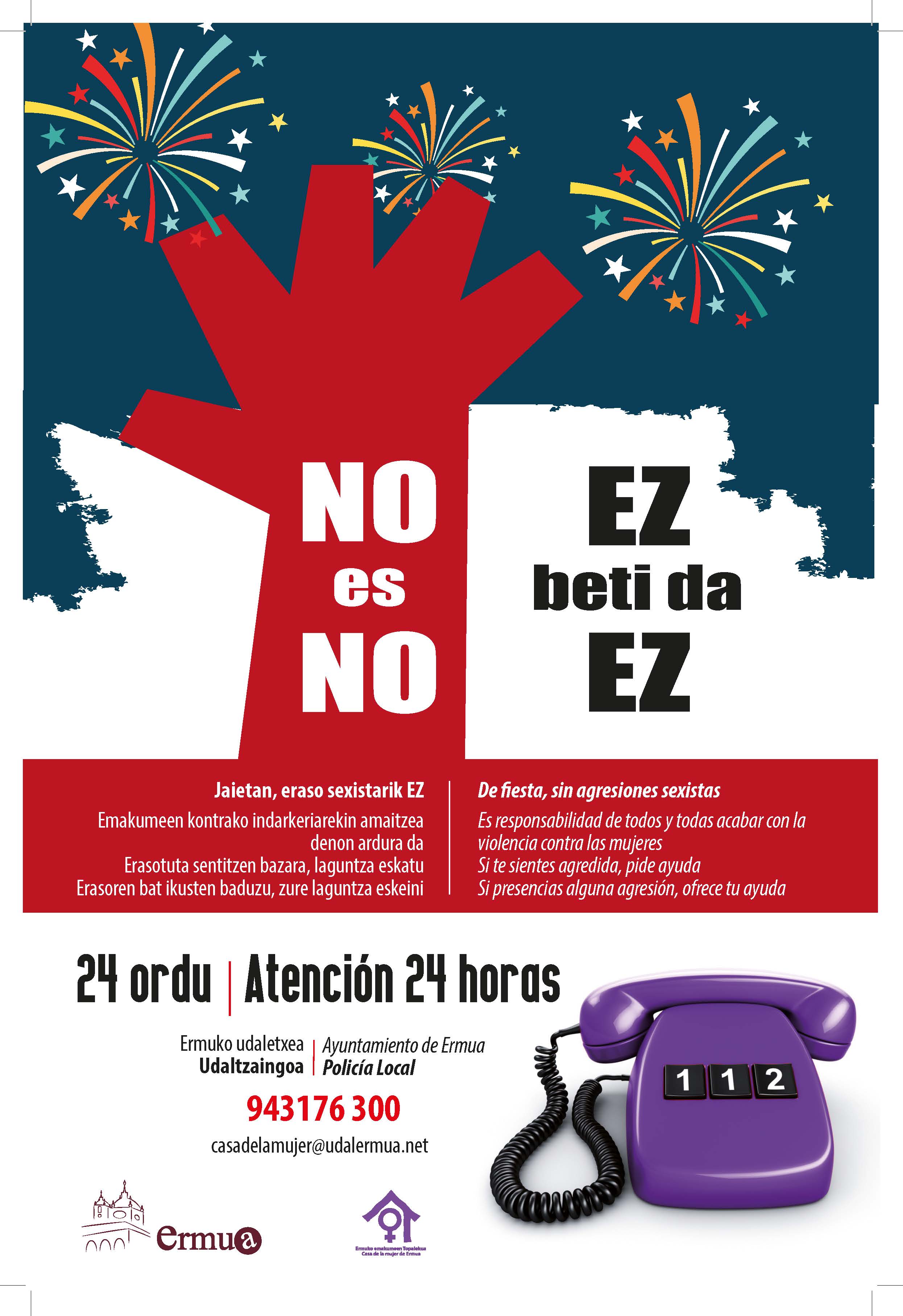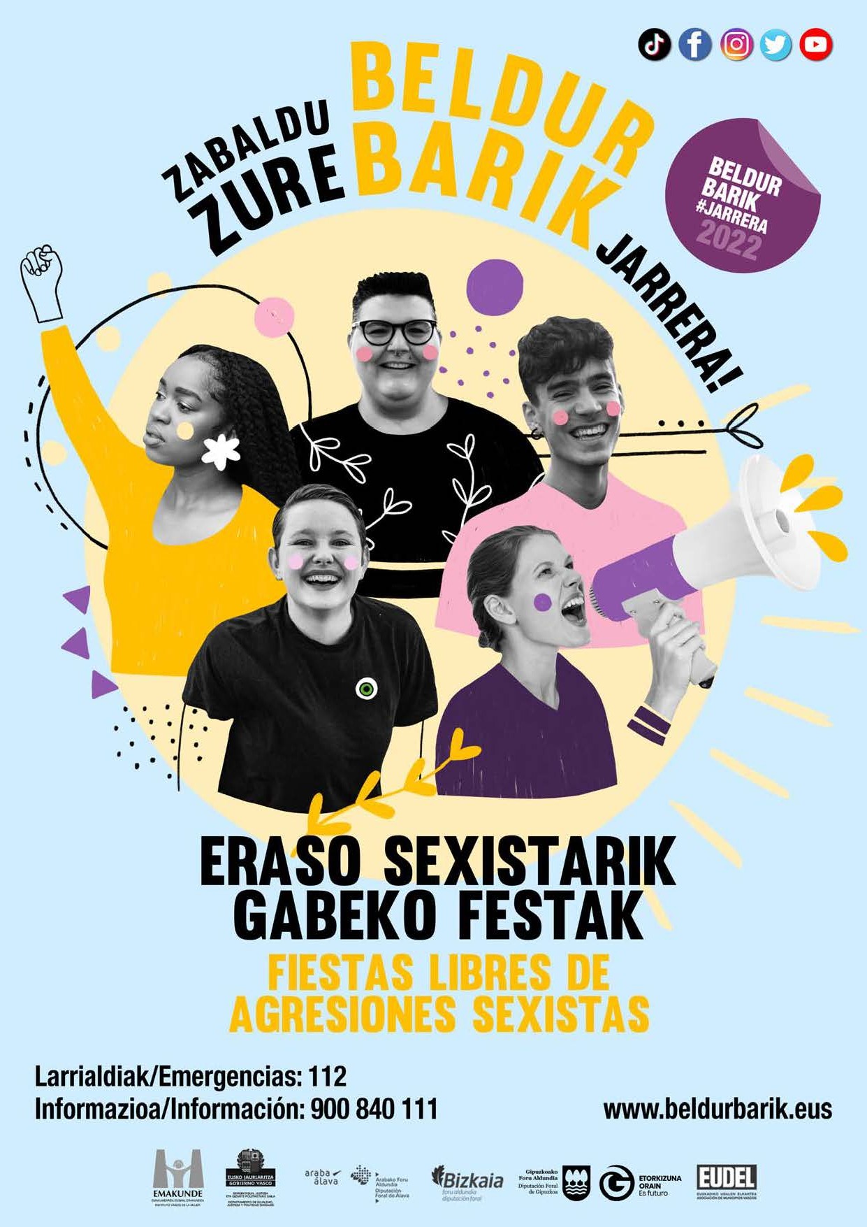 El Departamento de Igualdad del Ayuntamiento de Ermua ha puesto en marcha una campaña para sensibilizar y prevenir conductas machistas en los contextos de ocio y fiestas, especialmente ahora durante los Santiagos 2022. La campaña se enmarca en el Pacto de Estado Contra la Violencia de Género.