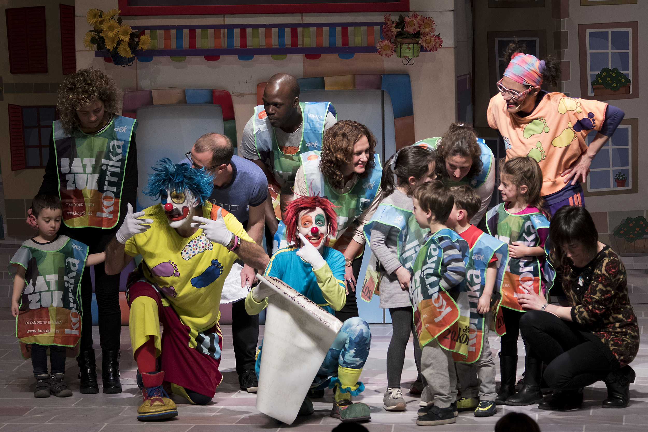 Galería fotográfica del espectáculo 'Tipi-tapa Korrika!' a cargo de Pirritx, Porrotx eta Marimotots en el Ermua Antzokia. Fotografías cedidas por el fotógrafo local Óscar Blanco Gutiérrez.