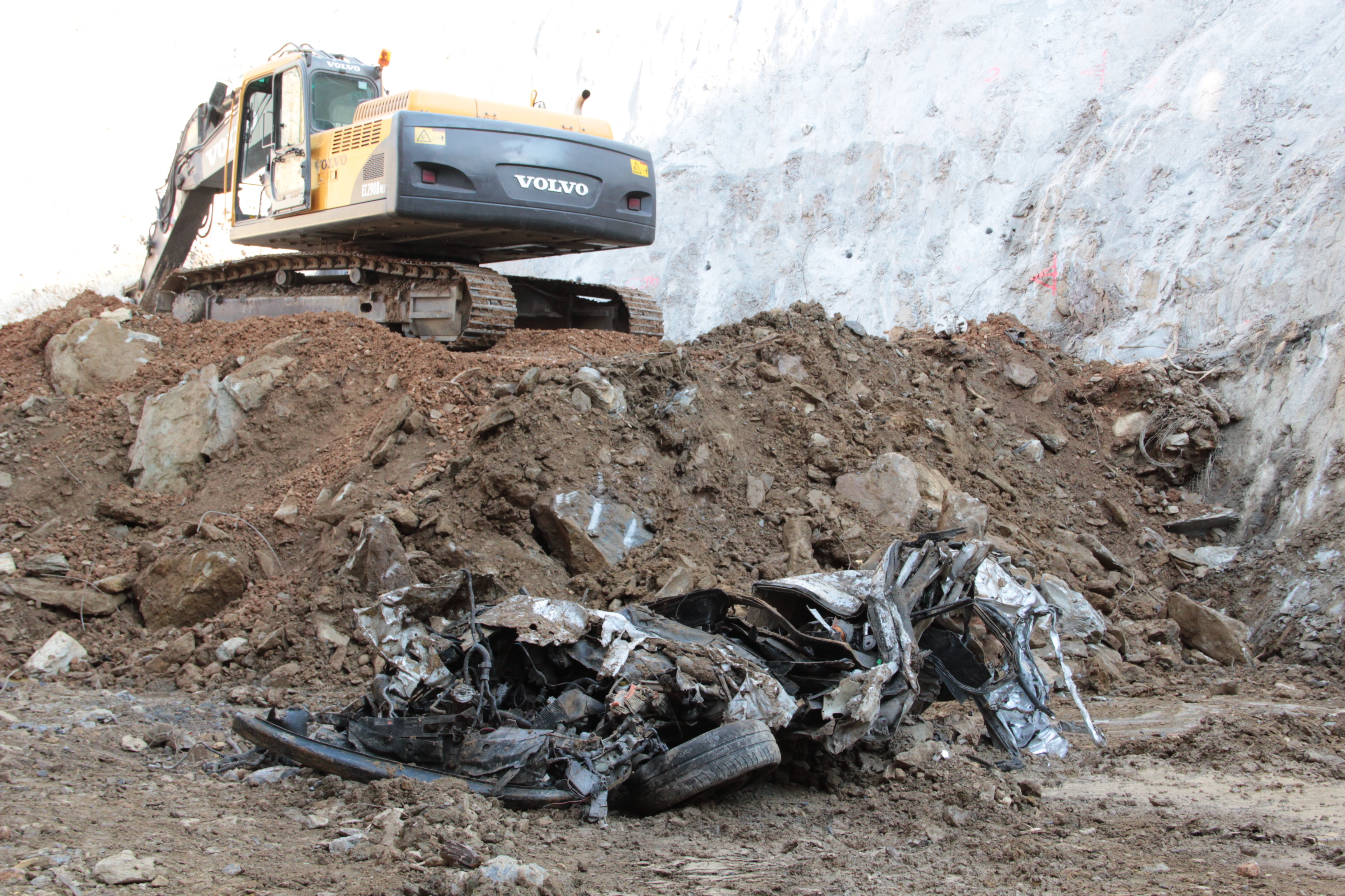 Galería de imágenes que muestran el último vehículo hallado tras el derrumbe ocurrido en Sakona.