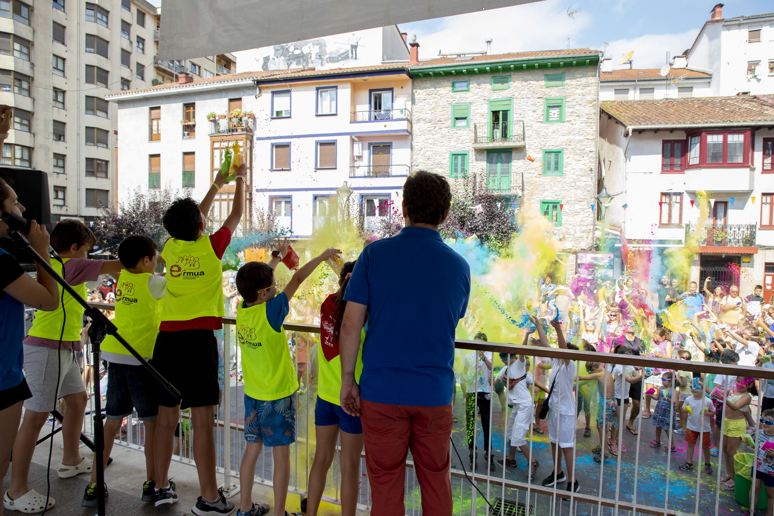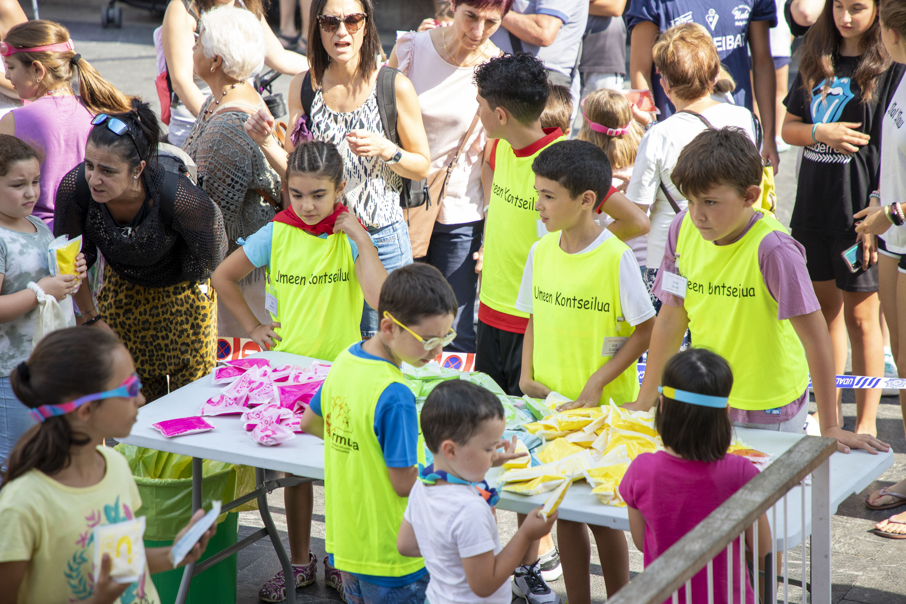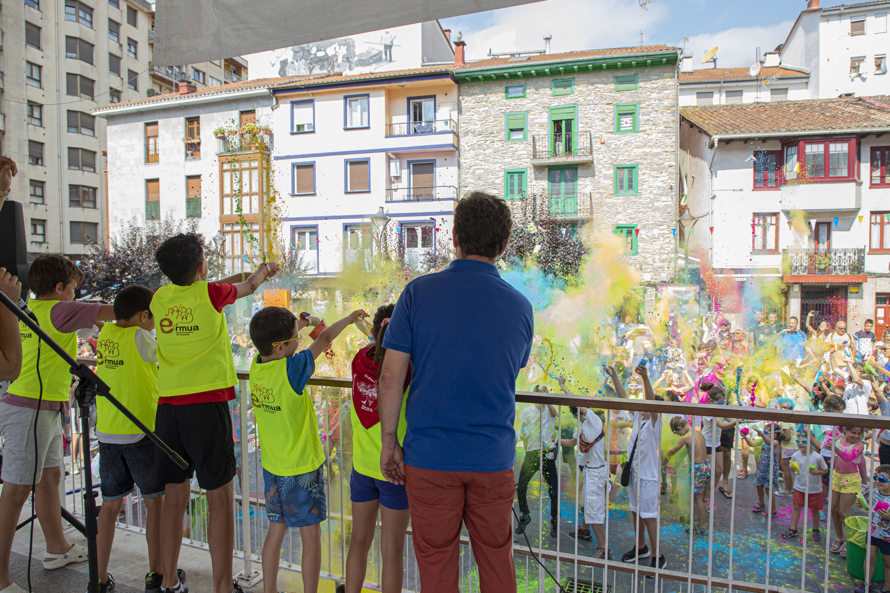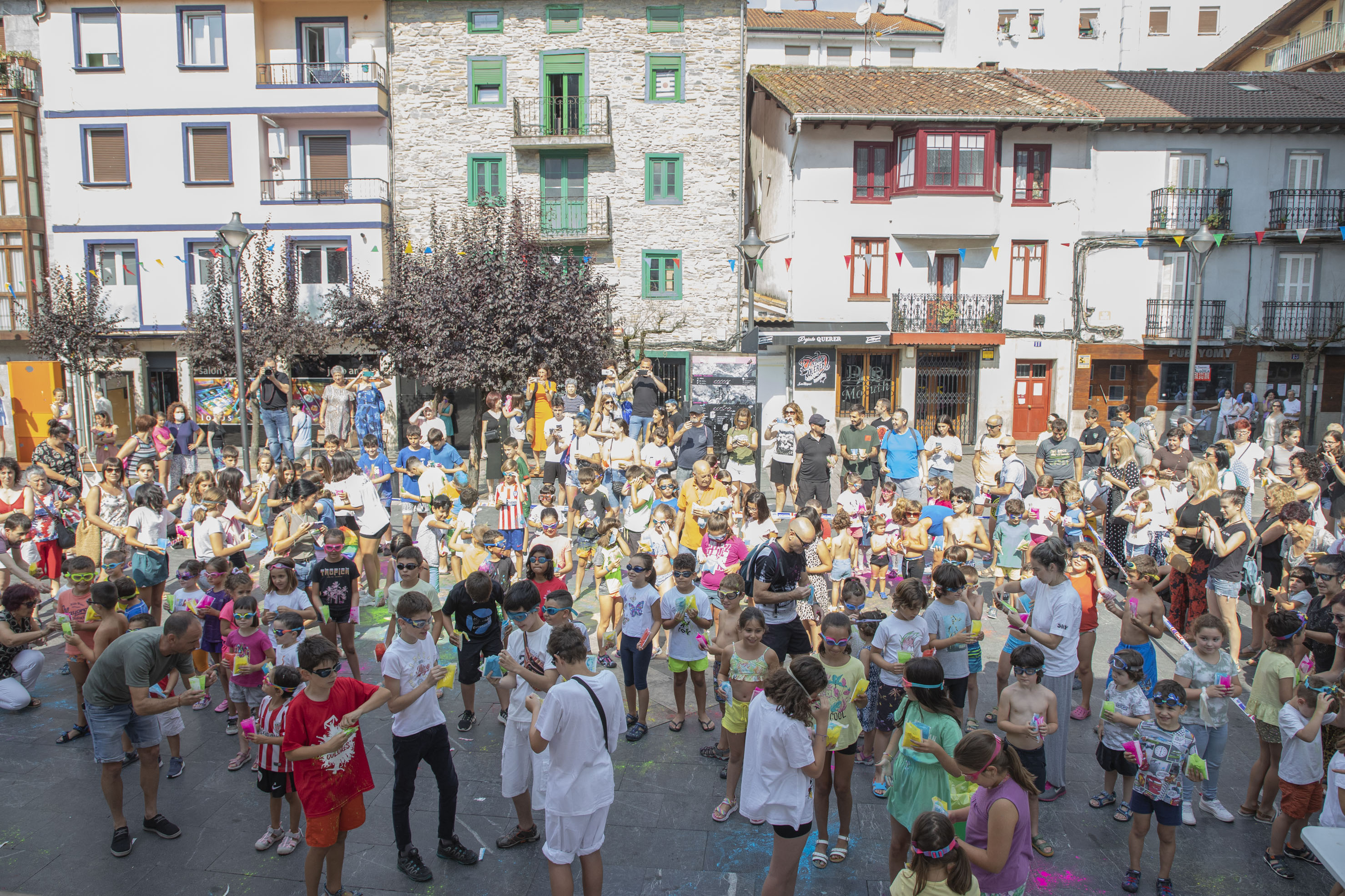 Gora Umeen Eguna! Ehun haur baino gehiago bildu dira gaur goizean Orbe Kardinala plazan Haurren Egunari hasiera emateko. Covid-19aren pandemiagatik herriko jairik gabe bi urte igaro ondoren, koloretako hautsen haur-txupinazoak ekin dio egun koloretsu eta freskagarriari.