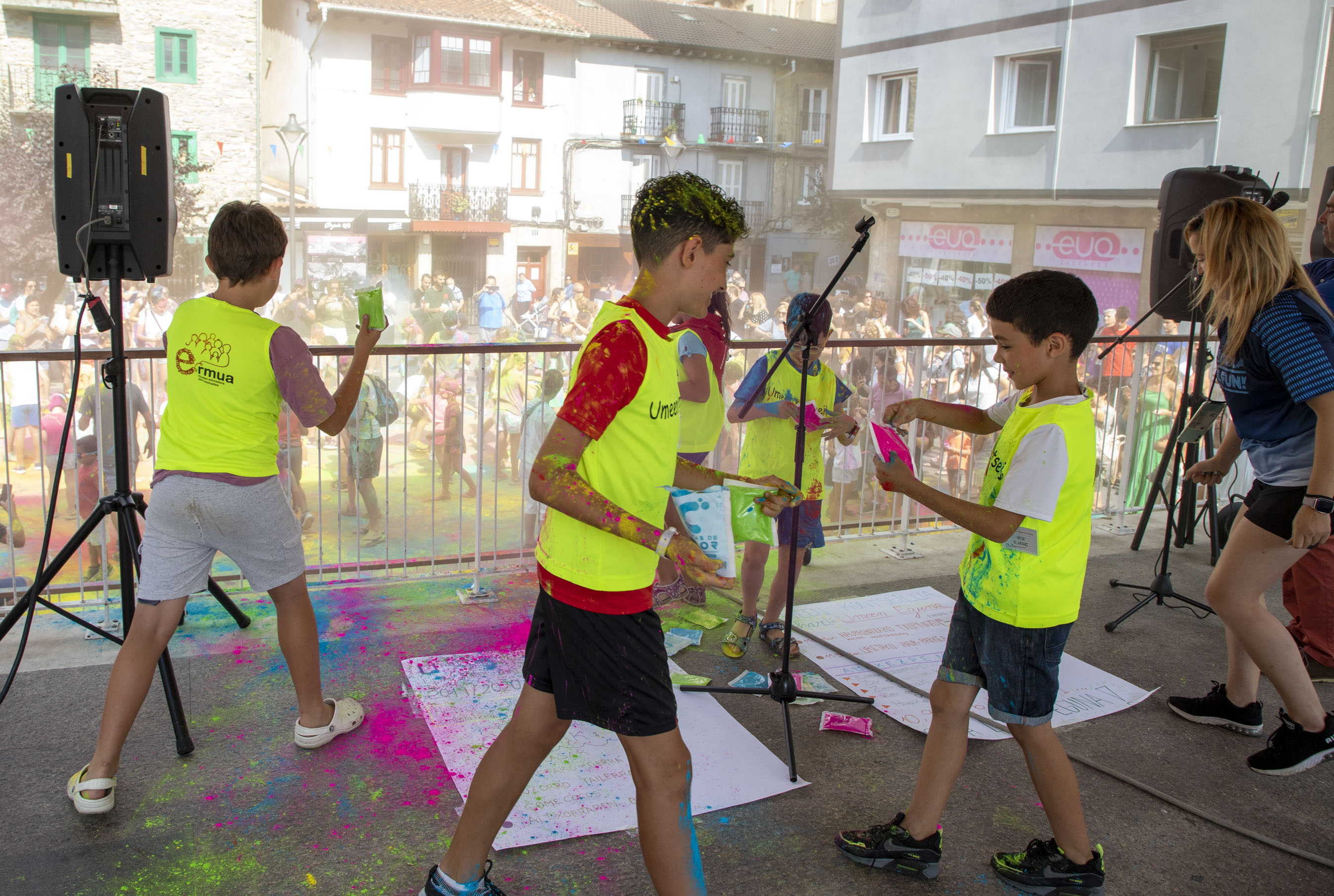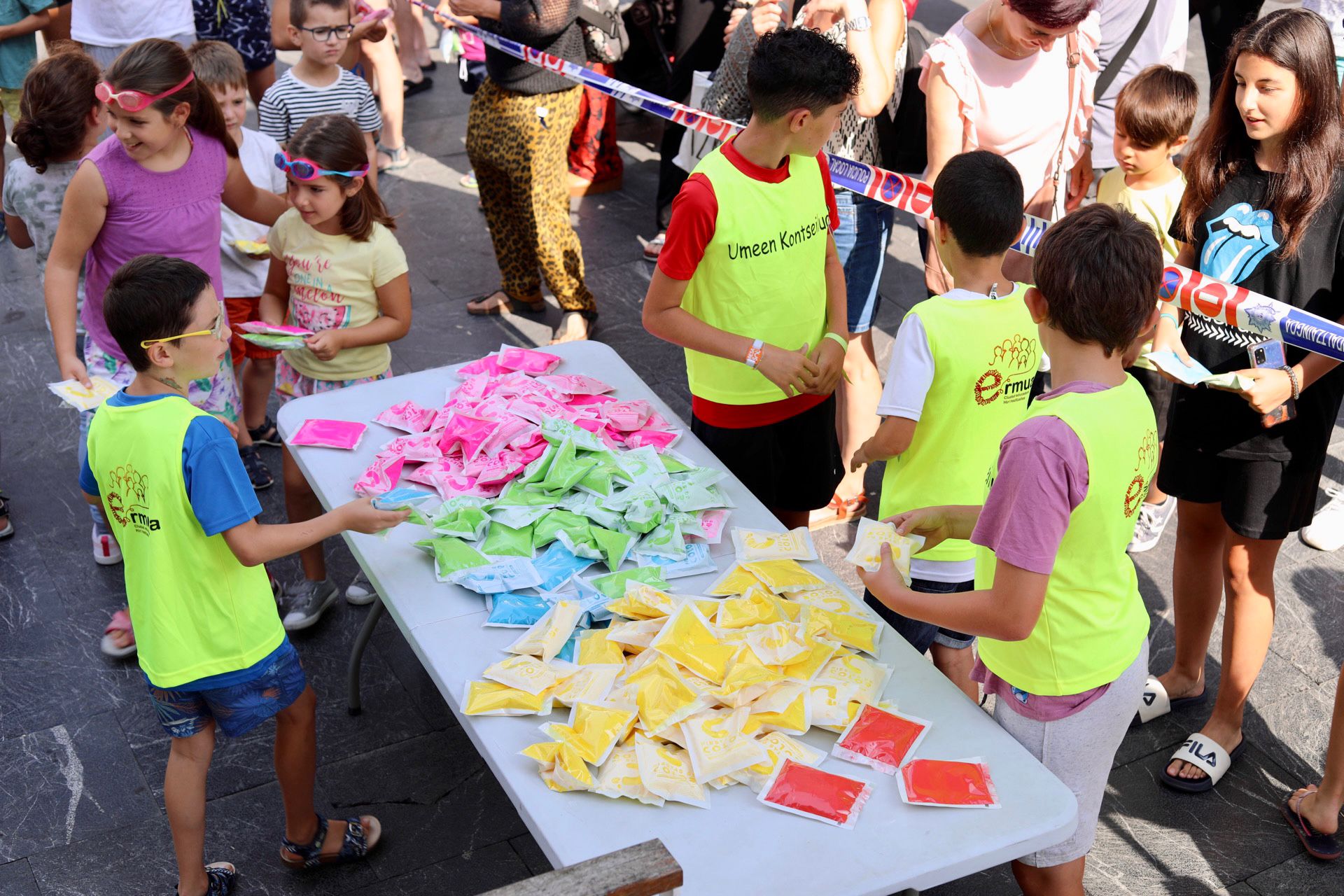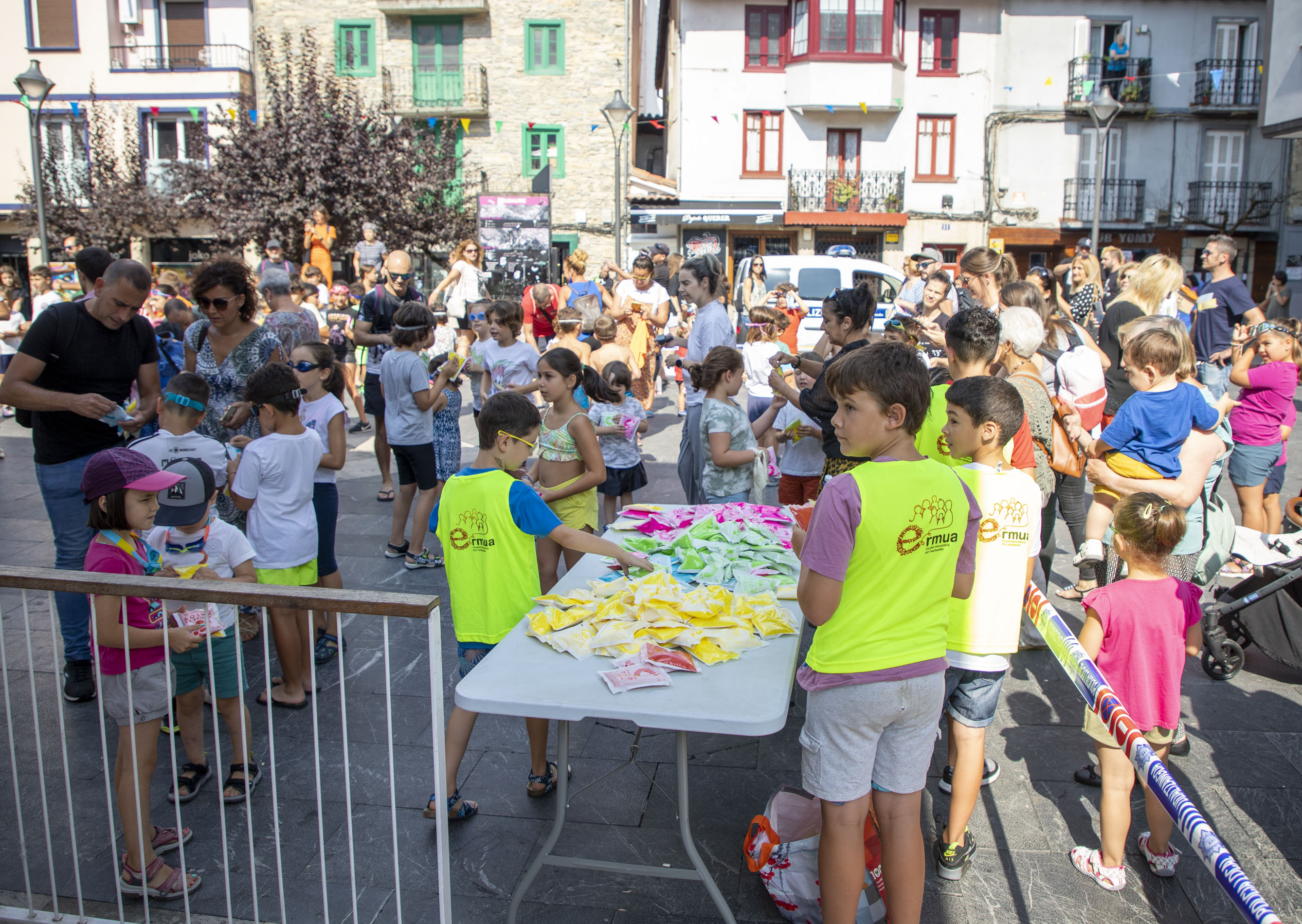 Gora Umeen Eguna! Ehun haur baino gehiago bildu dira gaur goizean Orbe Kardinala plazan Haurren Egunari hasiera emateko. Covid-19aren pandemiagatik herriko jairik gabe bi urte igaro ondoren, koloretako hautsen haur-txupinazoak ekin dio egun koloretsu eta freskagarriari.