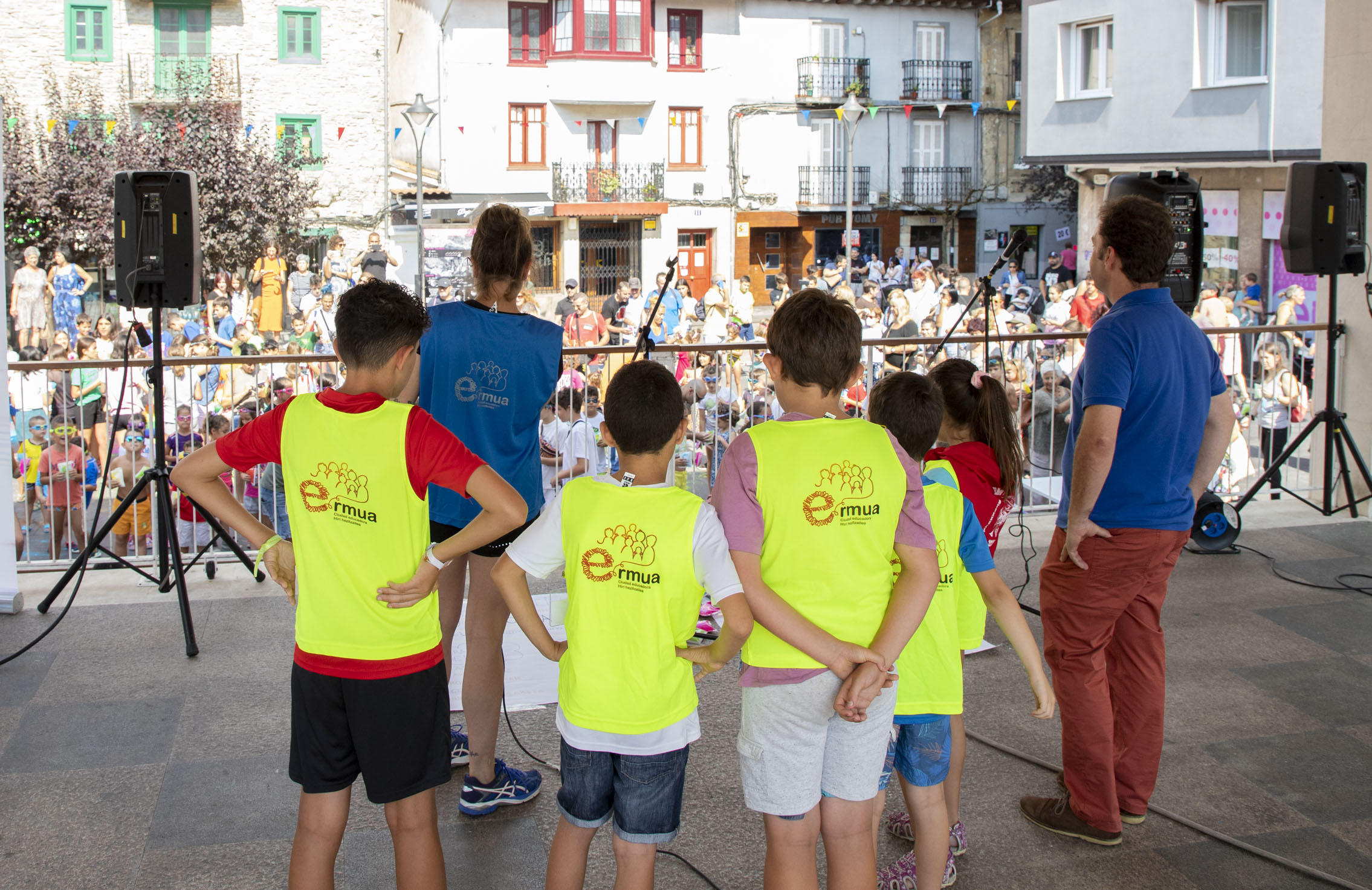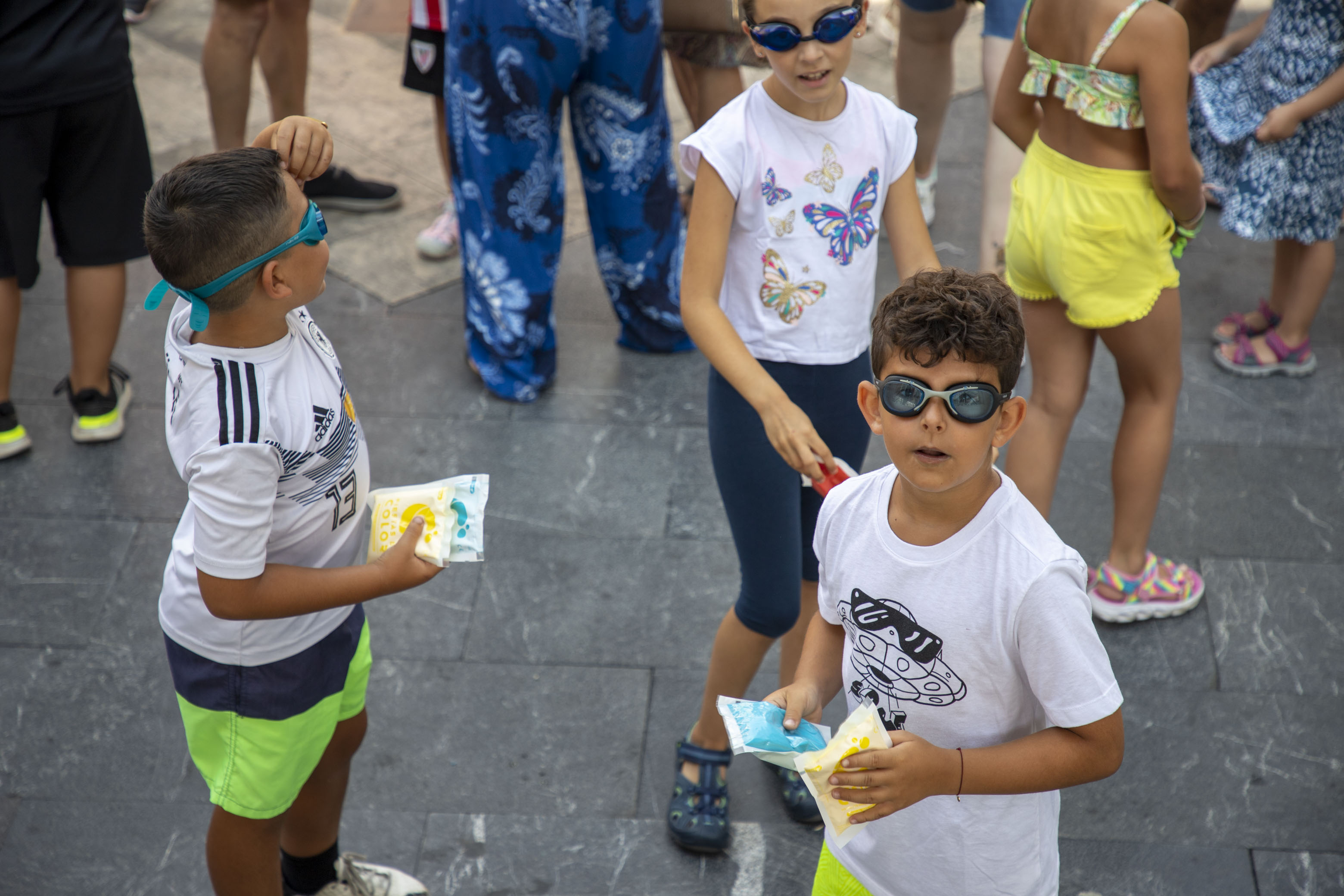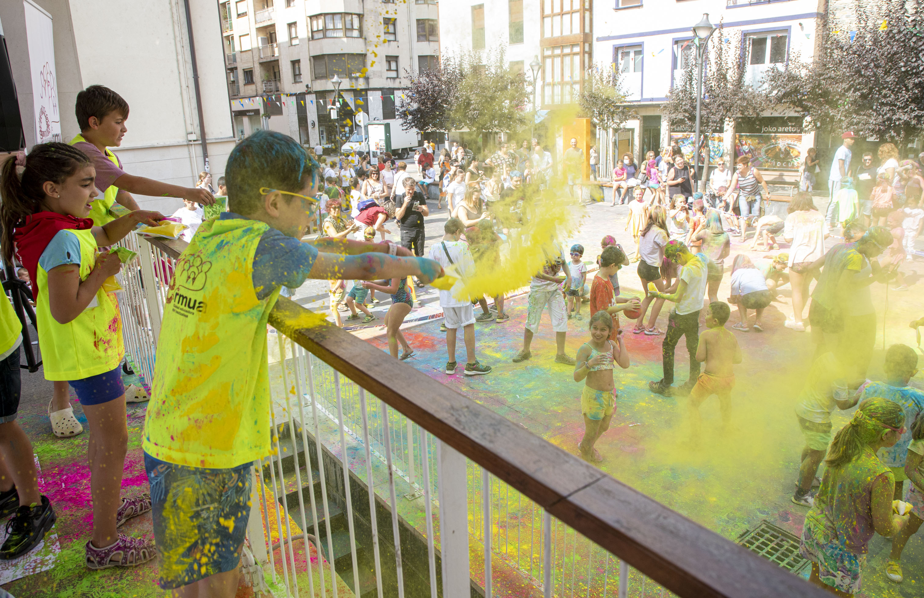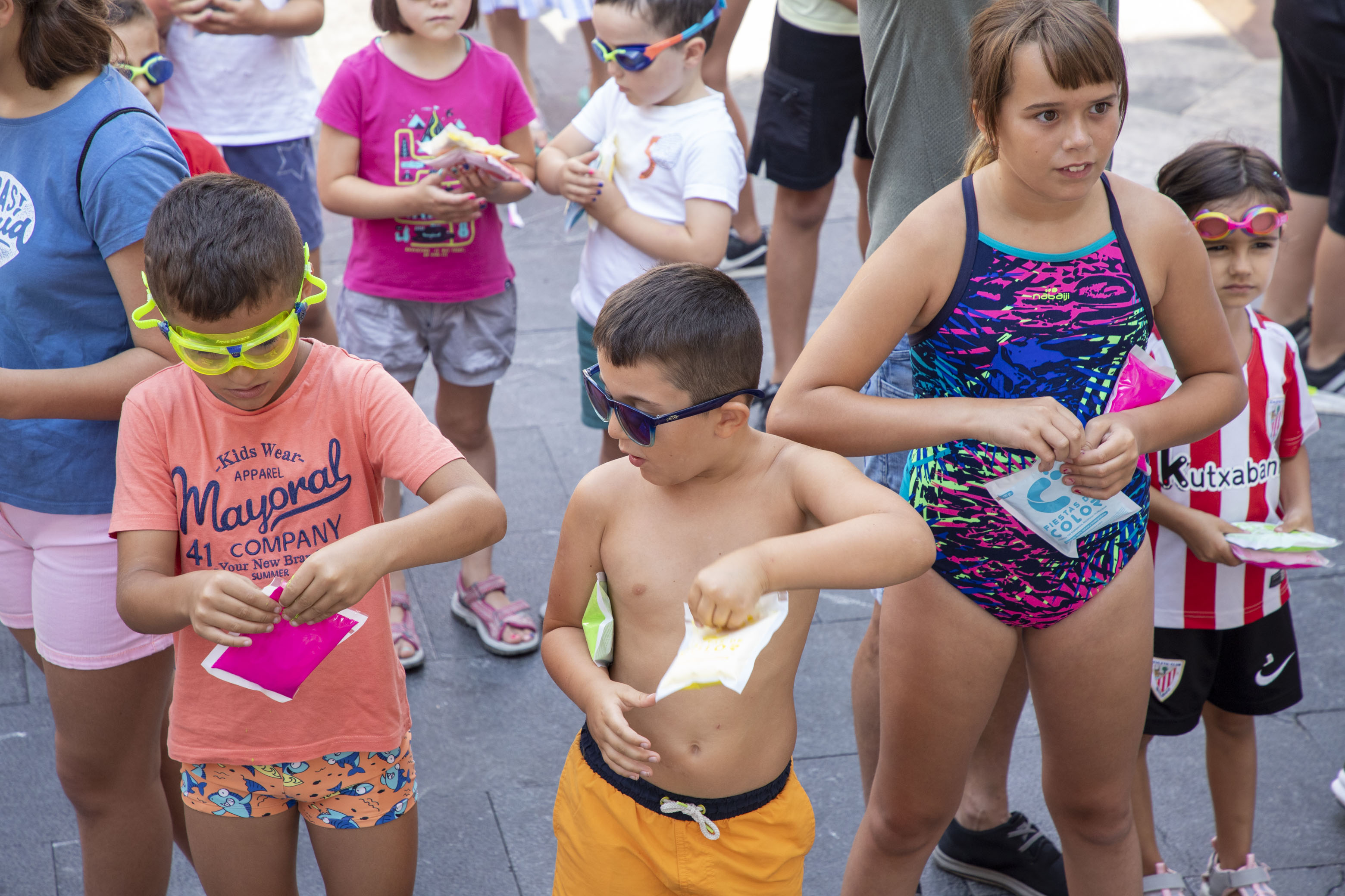Gora Umeen Eguna! Ehun haur baino gehiago bildu dira gaur goizean Orbe Kardinala plazan Haurren Egunari hasiera emateko. Covid-19aren pandemiagatik herriko jairik gabe bi urte igaro ondoren, koloretako hautsen haur-txupinazoak ekin dio egun koloretsu eta freskagarriari.