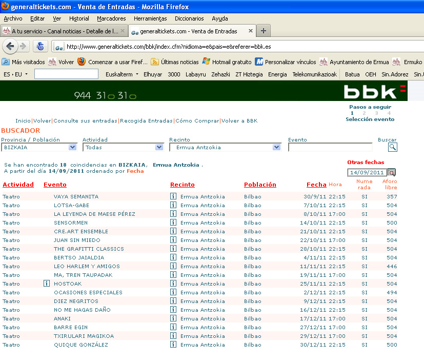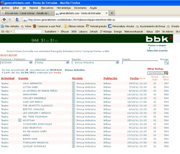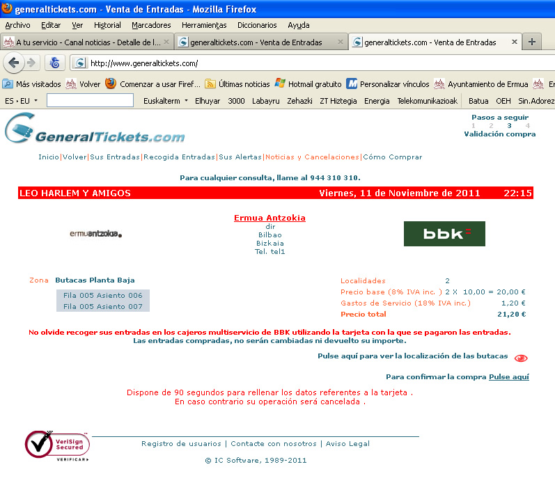 Fotografías de un cajero multiservicio y de la web de generaltickets.