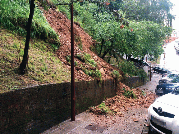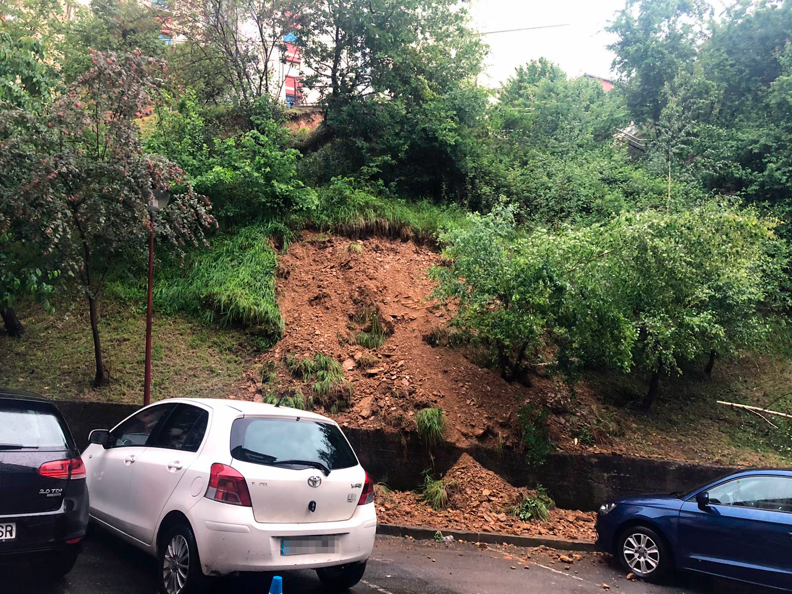 Las intensas precipitaciones producen incidencias y arrastran una parte del talud de Aldapa
