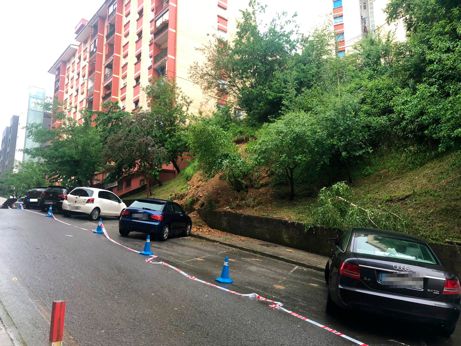 Las intensas tormentas y lluvias torrenciales de ayer han producido diversos incidentes en nuestro municipio de Ermua sin causar daños personales aunque sí materiales –todavía sin cuantificar- en distintos puntos de la localidad, según ha informado a Policía Local. El más reseñable ha sido un desprendimiento de tierra, piedras y árboles producido a primera hora (sobre las 7 horas) de esta mañana de domingo en la calle Aldapa.