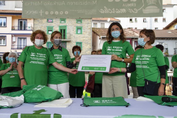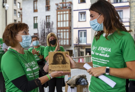 La Asociación Contra el Cáncer en Bizkaia y el grupo de personas voluntarias de Ermua entregaron este 17 de octubre la recaudación obtenida con las inscripciones de la séptima y simbólica marcha popular del municipio.