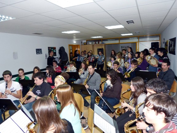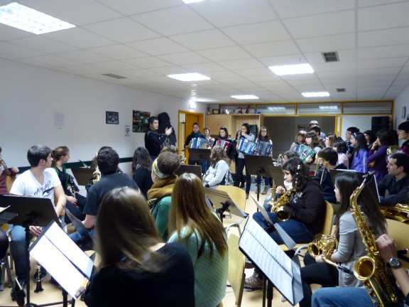 Kepa Junkera ensaya en Ermua con el alumnado de Alboka Musika Eskola