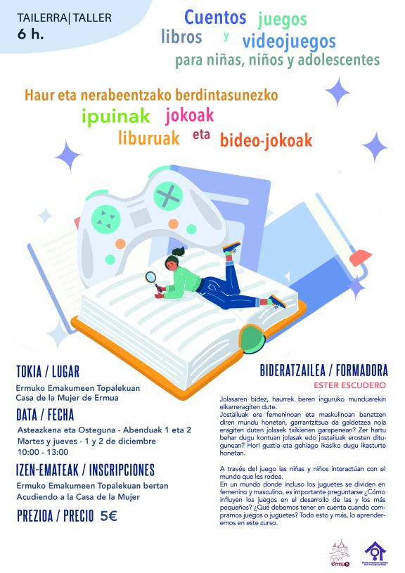 Las niñas y los niños tienen la necesidad de jugar y divertirse. A través de ello, aprenden e interactúan con el mundo que les rodea, además de atender necesidades como moverse, explorar, o expresarse. El juego y el aprendizaje no distinguen géneros; pero en nuestro mundo muchos de los juguetes tienen una etiqueta o un uso femenino y masculino. Para reflexionar y aprender sobre ello la Escuela de Empoderamiento de Ermua ofrecerá un taller de 6 horas de duración los días 1 y 2 de diciembre, en horario de 10:00 a 13:00 horas.