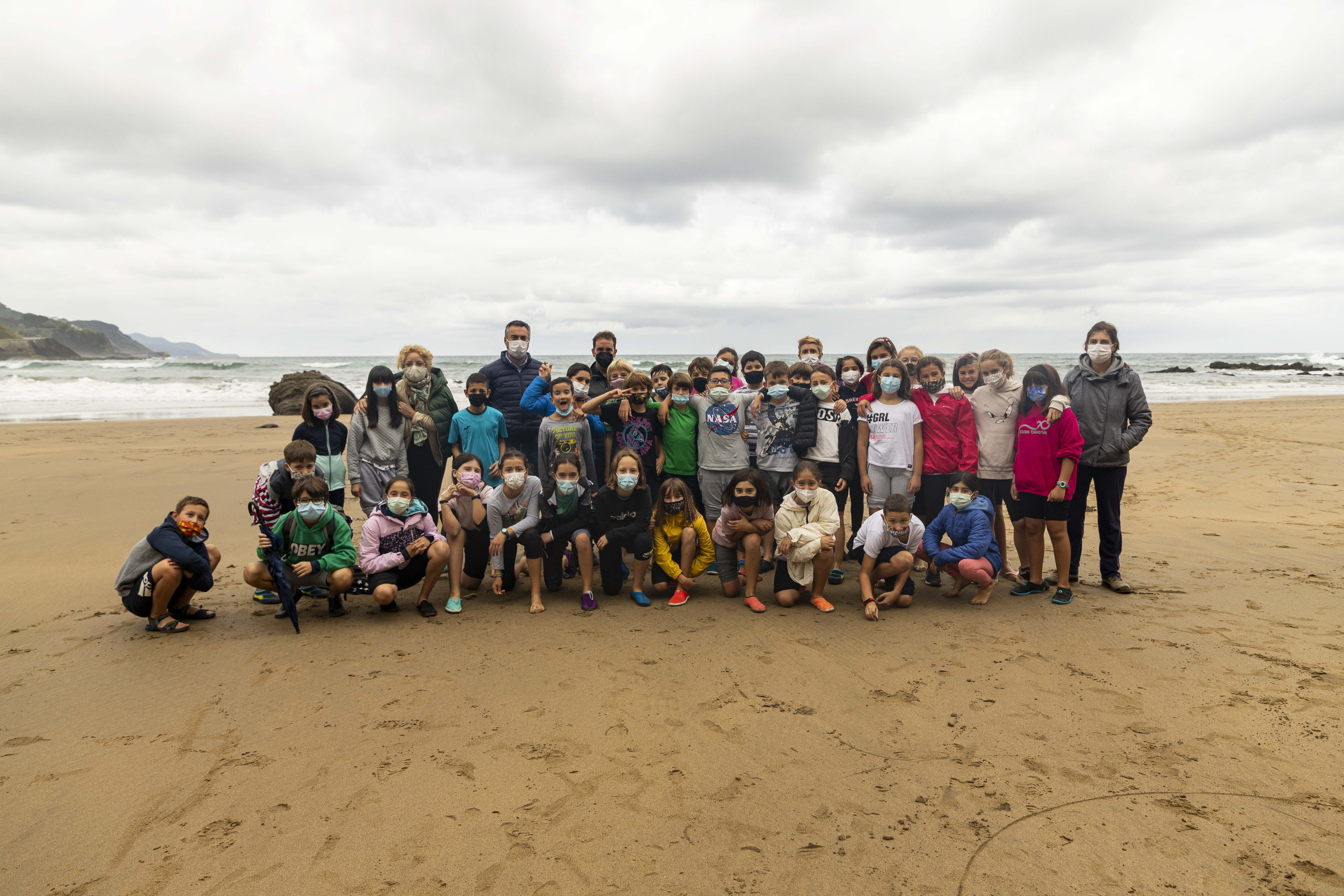 Los centros educativos locales de Educación Primaria han participado un año más en el programa de educación ambiental ‘Azterkosta’. Un total de 180 alumnos y alumnas acompañados de sus profesores/as han realizado trabajo de campo y recogida de datos en la playa Santiago de Deba para evaluar el entorno litoral.