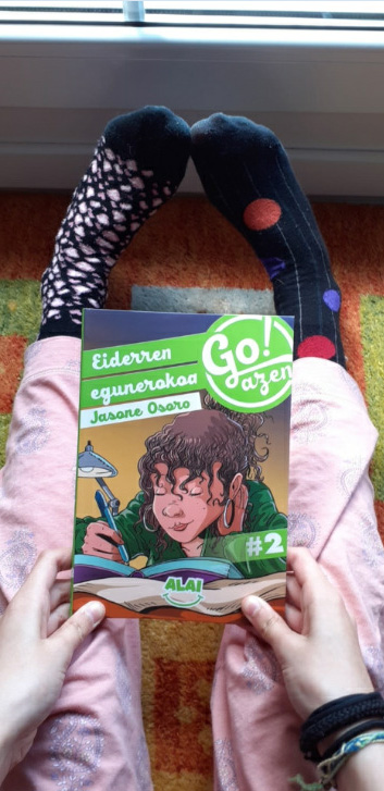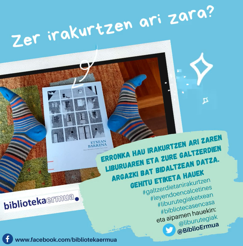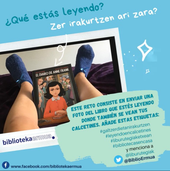 La biblioteca municipal de Ermua propone a todas las personas lectoras de nuestra localidad enviar una foto del libro que estén leyendo donde también se vean los calcetines.