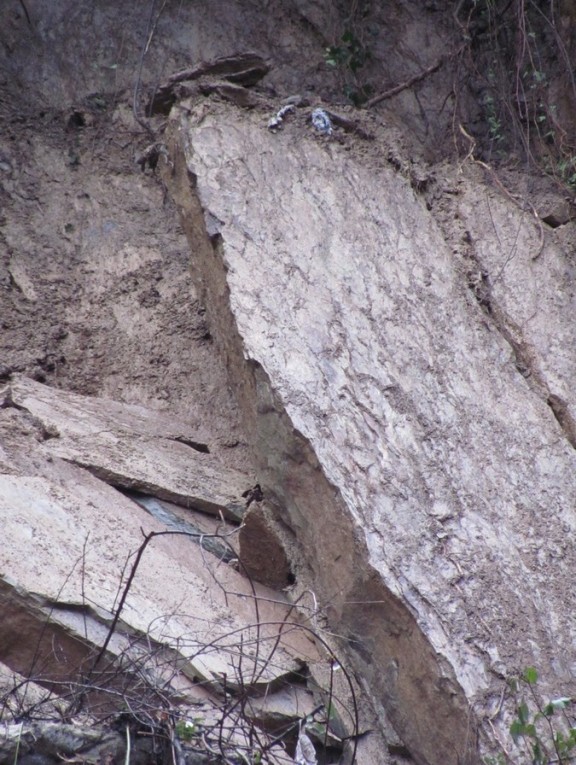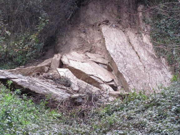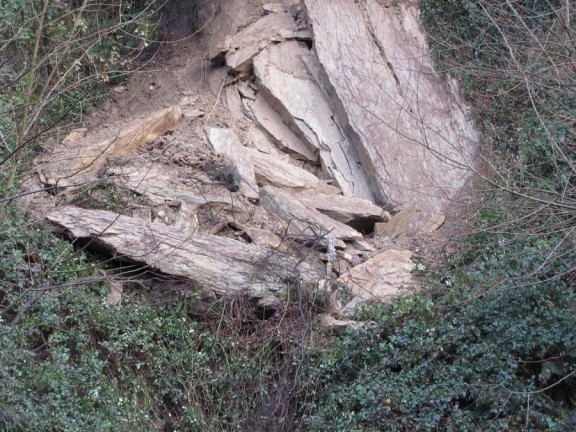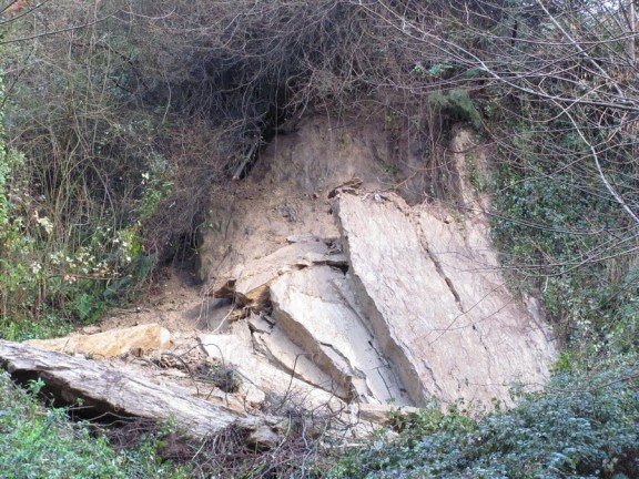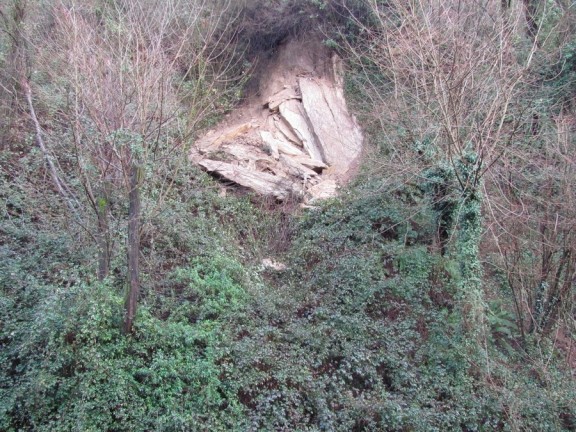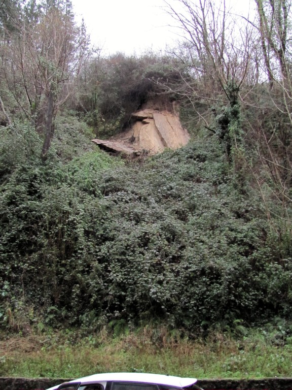 Una máquina de demolición desmontará las piedras que se soltaron ayer en un talud de Goienkale