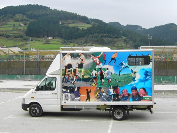 Vechículo de la Diputación Foral de Bizkaia en donde realiza reconomientos médicos a deportistas amateurs y que vendrá también a Ermua