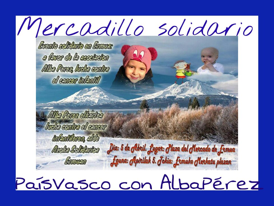 Asociaciones y colectivos varios de Ermua (Bizkaia) realizarán un mercadillo solidario el fin de semana próximo. Mercadillo que estará instalado en la Plaza del Mercado municipal de Abastos, concretamente en el antiguo puesto de flores los días 5, 6 y 7 de abril. La iniciativa pretende recaudar fondos para entregárselos a la Asociación Alba Pérez y sufragar equipos de investigación del Hospital Sant Joan de Déu de Barcelona.