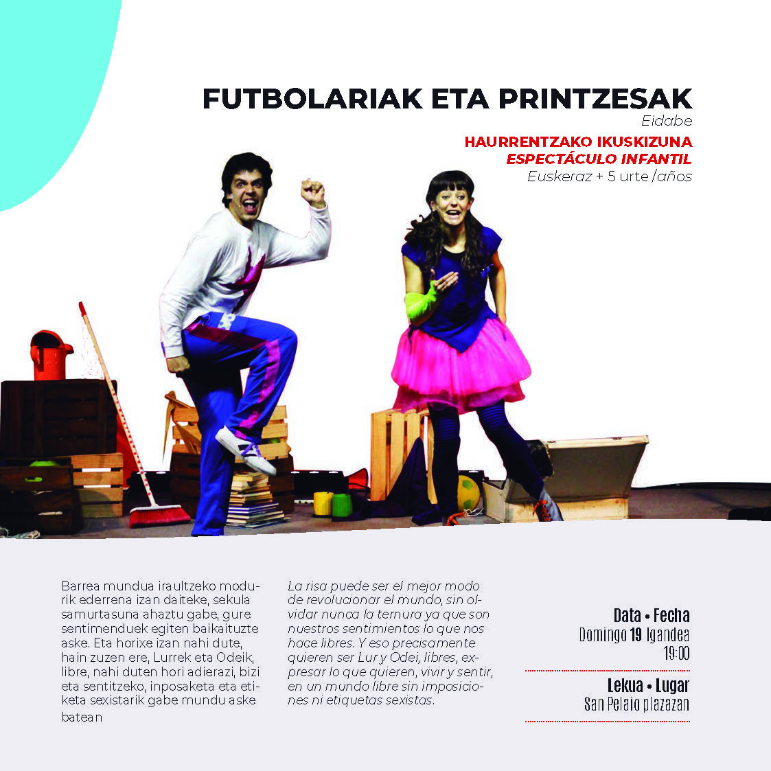 El programa cultural Etxetik Plazara ha superado ya el ecuador, y ofrece cuatro nuevas actuaciones a disfrutar para este fin de semana. Así, durante los próximos tres días podremos asistir a espectáculos de danza, música y teatro infantil a pocos pasos de nuestras casas.