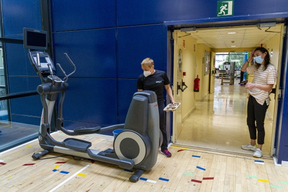 El polideportivo de Ermua ha reabierto hoy tras tres meses cerrado a causa de la pandemia del Covid-19. La instalación inicia el camino de la nueva normalidad con un estructicto protocolo de seguridad para las personas usuarias.