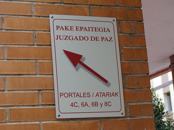 El Área de Ciudad del Ayuntamiento de Ermua ha colocado unas placas en la zona de San Pelayo para señalizar la ubicación del Juzgado de Paz. Asimismo, también indican la localización de los portales 4C, 6A, 6B y 8C.