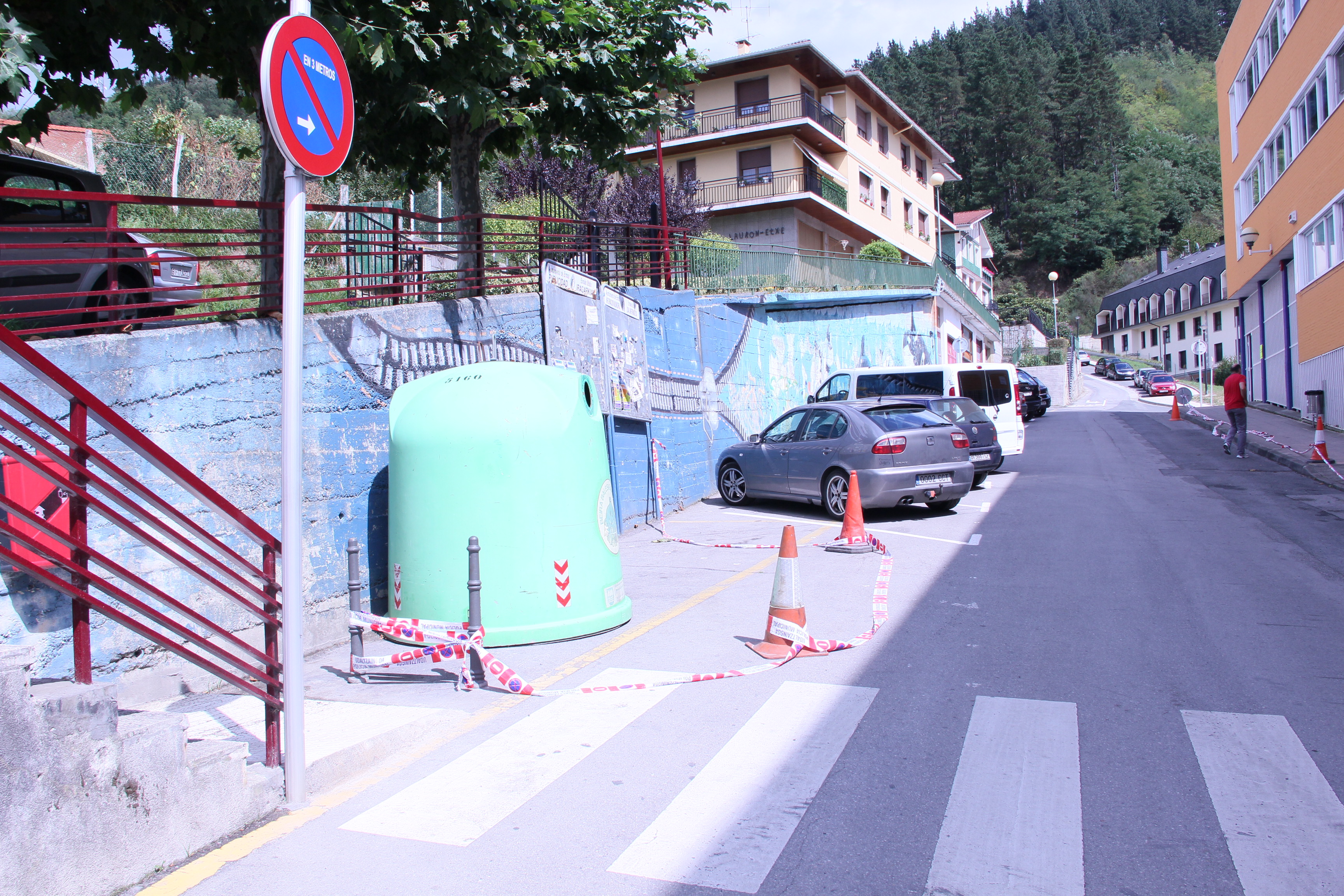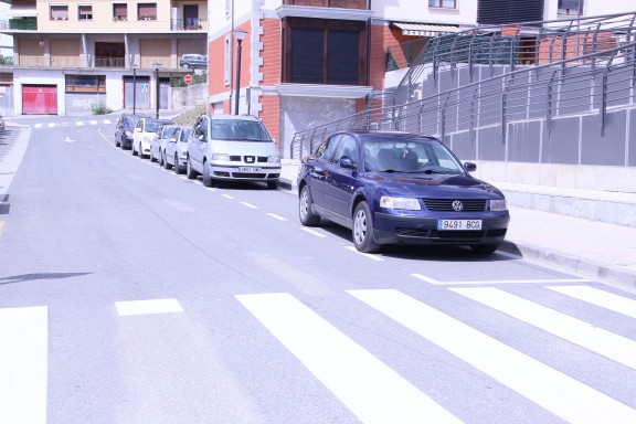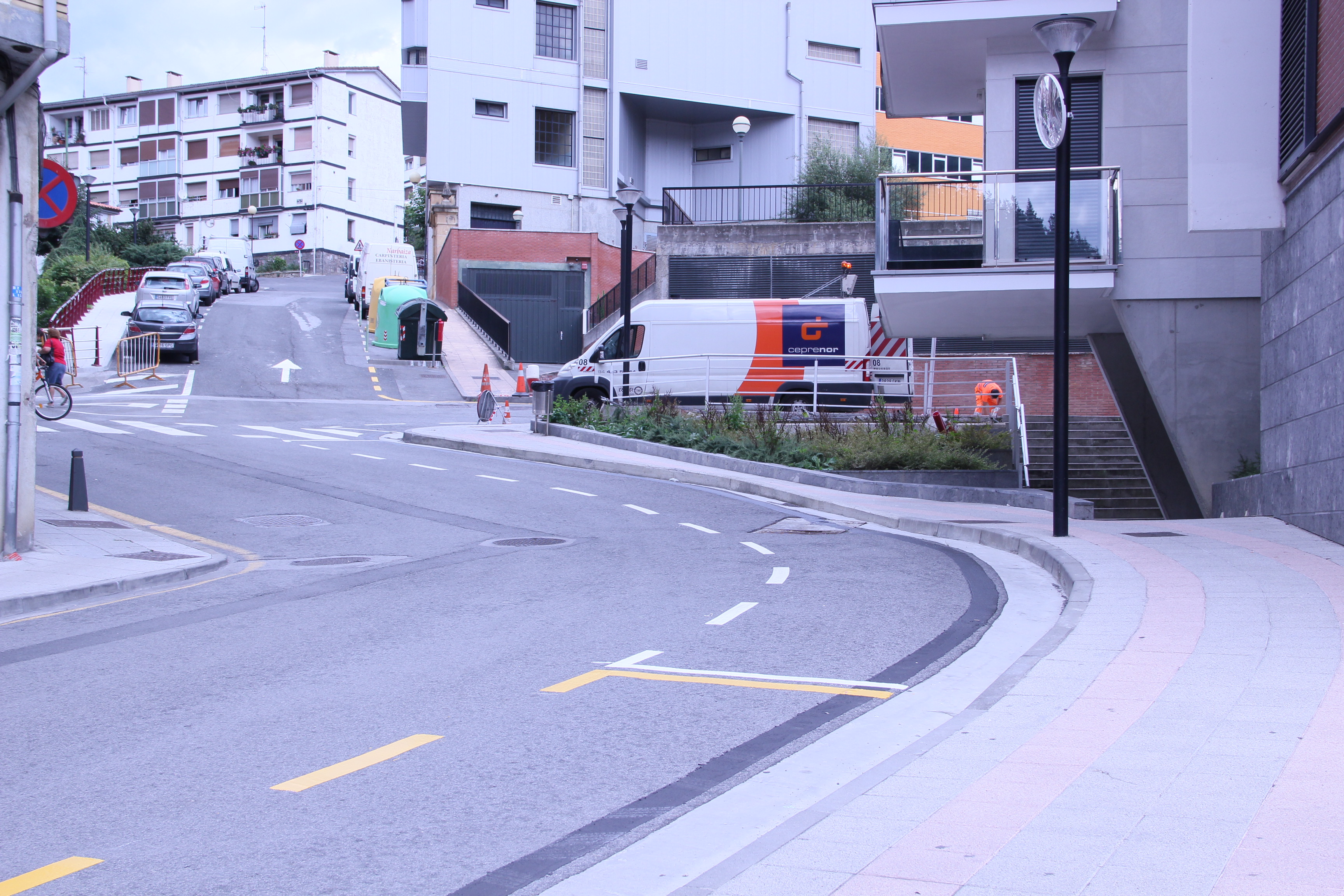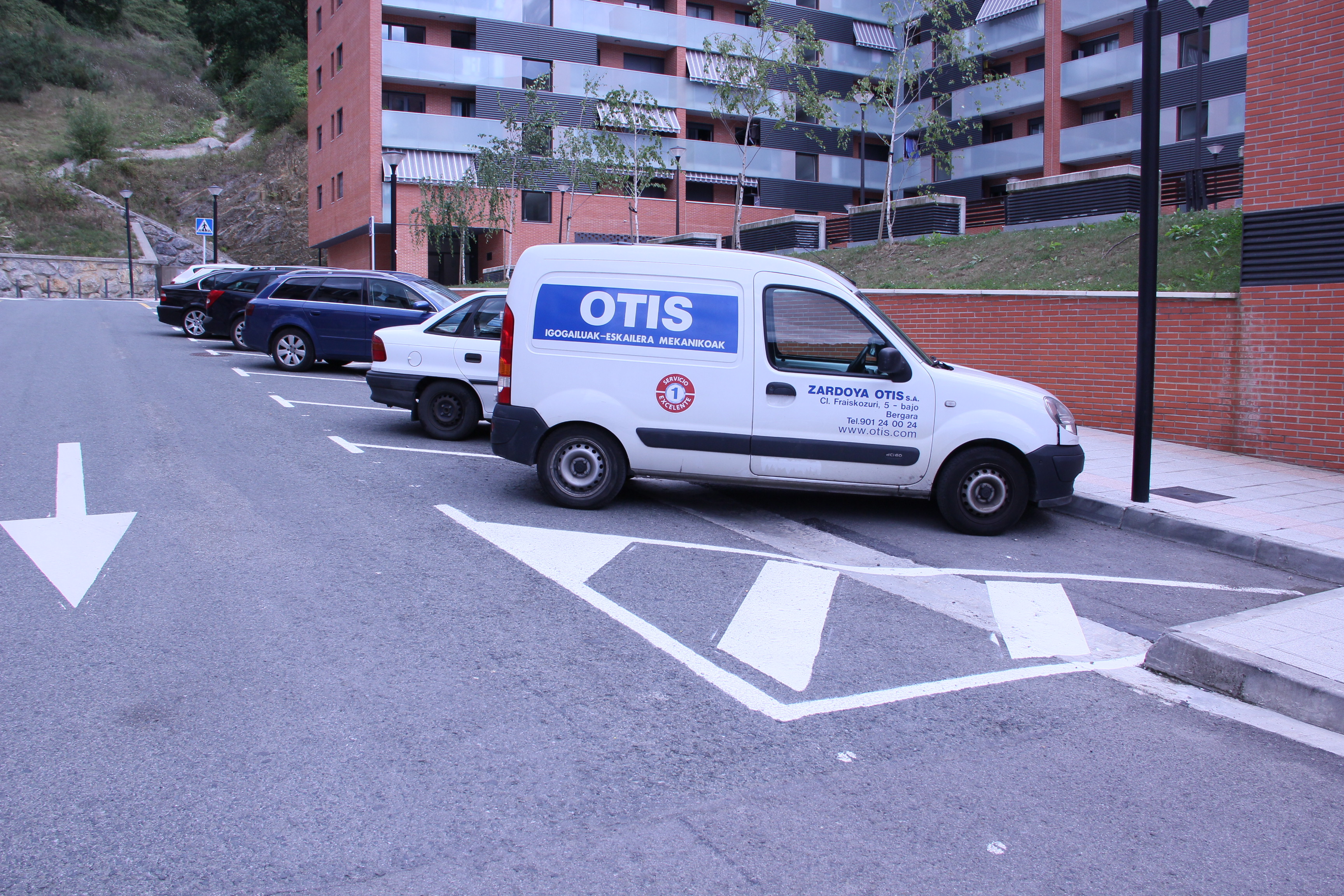 Fotografías que muestran el estado actual de los nuevos sentidos de circulación y estacionamientos en Abeletxe.