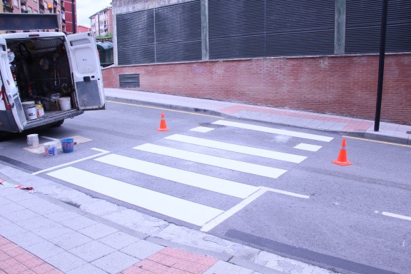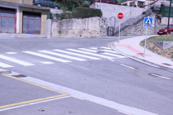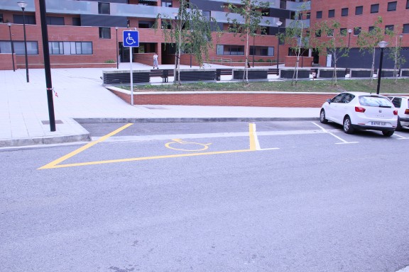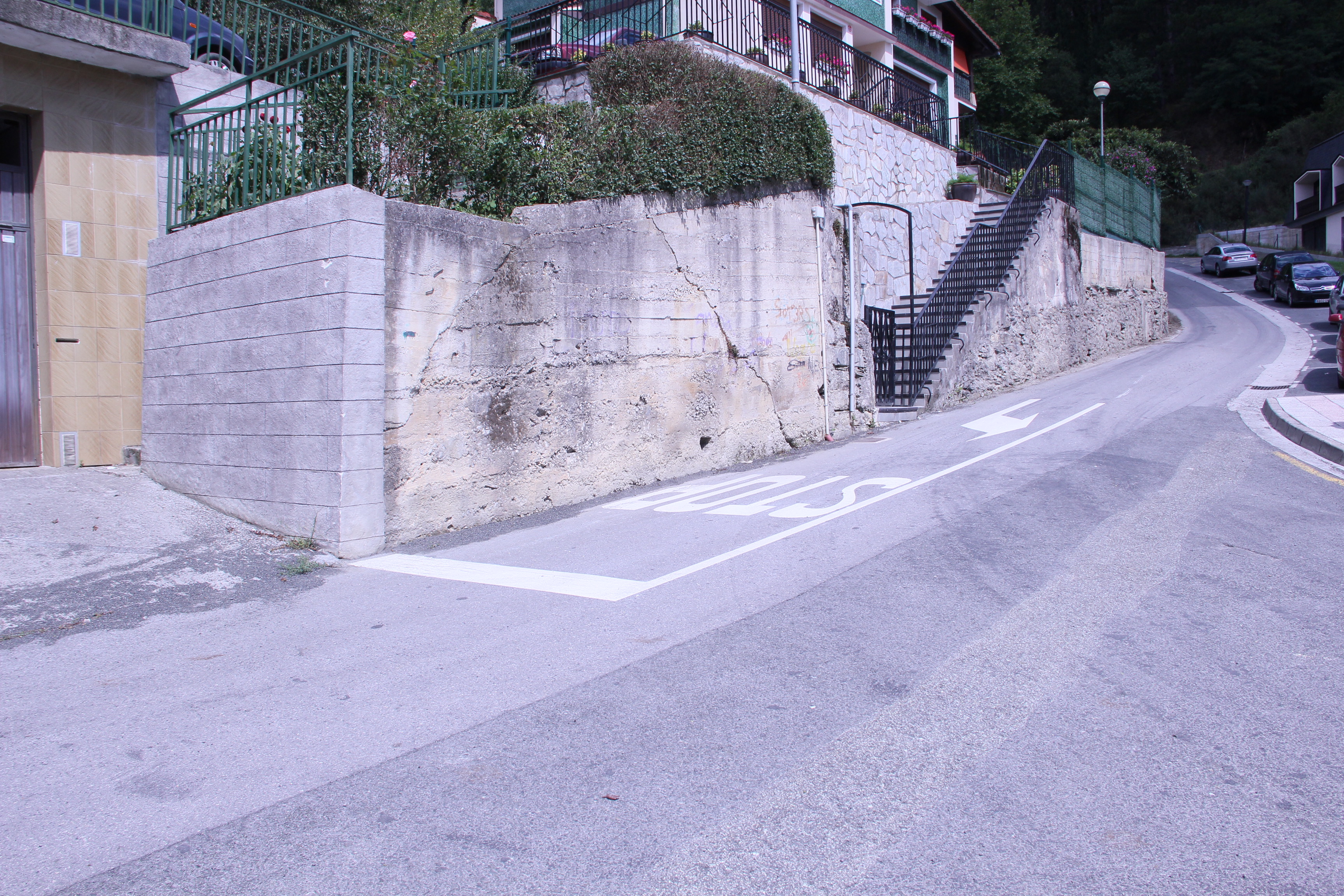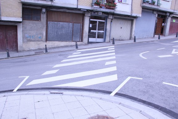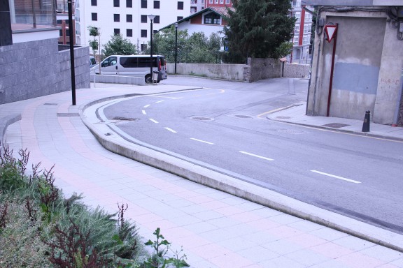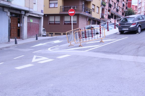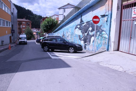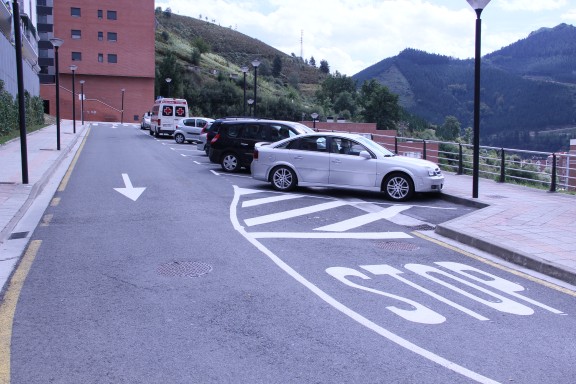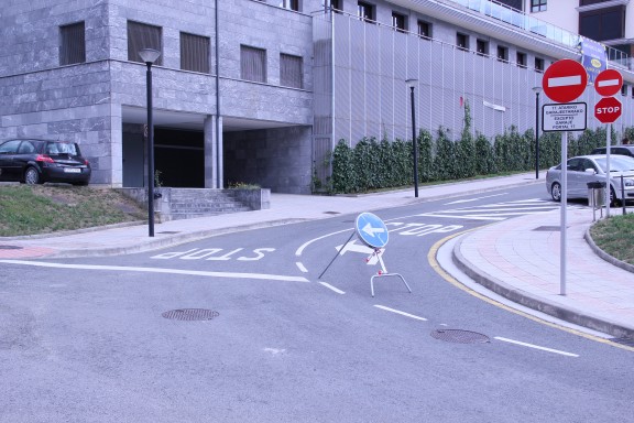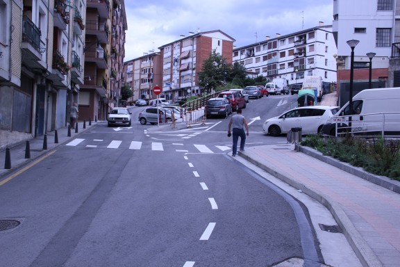 Fotografías que muestran el estado actual de los nuevos sentidos de circulación y estacionamientos en Abeletxe.