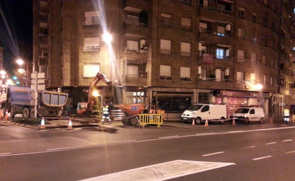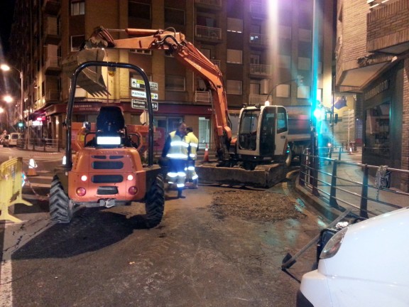 Obras para la reparación de una tubería de la red de agua potable