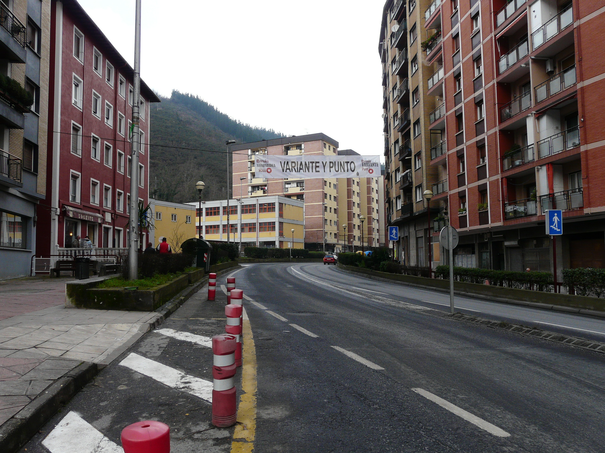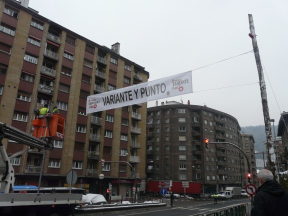 Pancantas colocadas por el Ayunatmiento de Ermua para reivindicar que se ejecute el proyecto de variante para el municipio