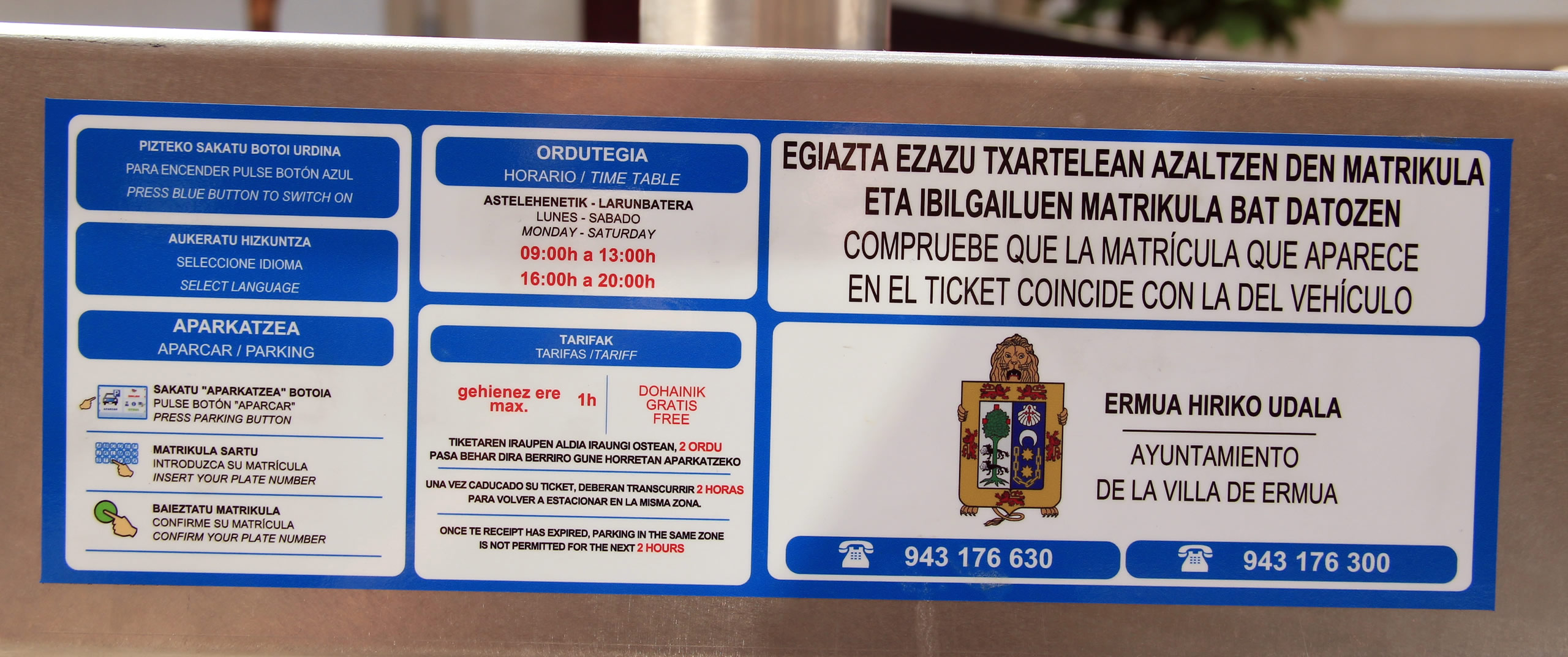 En Ermua tendremos OTA (Ordenación del Tráfico y del Aparcamiento) en breve plazo. Este mismo verano comenzará a funcionar la regulación del sistema de aparcamiento limitado en la zona centro del casco urbano. En la tarde de ayer se instalaron los tres parquímetros que expenderán los tickets que debemos retirar los/as automovilistas tras estacionar en las plazas de las zonas reguladas. Son parquímetros estándar, metálicos y autónomos merced a una placa solar, que incluso tienen ranura para monedas, aunque en Ermua el sistema rotatorio de una hora será gratuito. Al no estar en funcionamiento todavía, tienen colocada una placa metálica antivandálica para preservar el teclado y la pantalla. Están colocados en la esquina de Probaleku con Zubiaurre, en Diputación esquina del lateral de la plaza del Mercado y en Karabixa paralelo con Goienkale. En breve comenzarán las pruebas para su uso. No funcionarán en las fiestas de Santiago y tampoco en agosto.