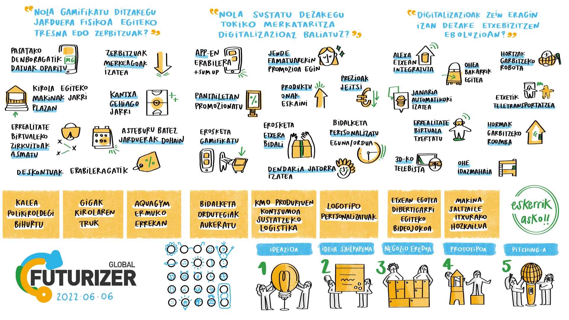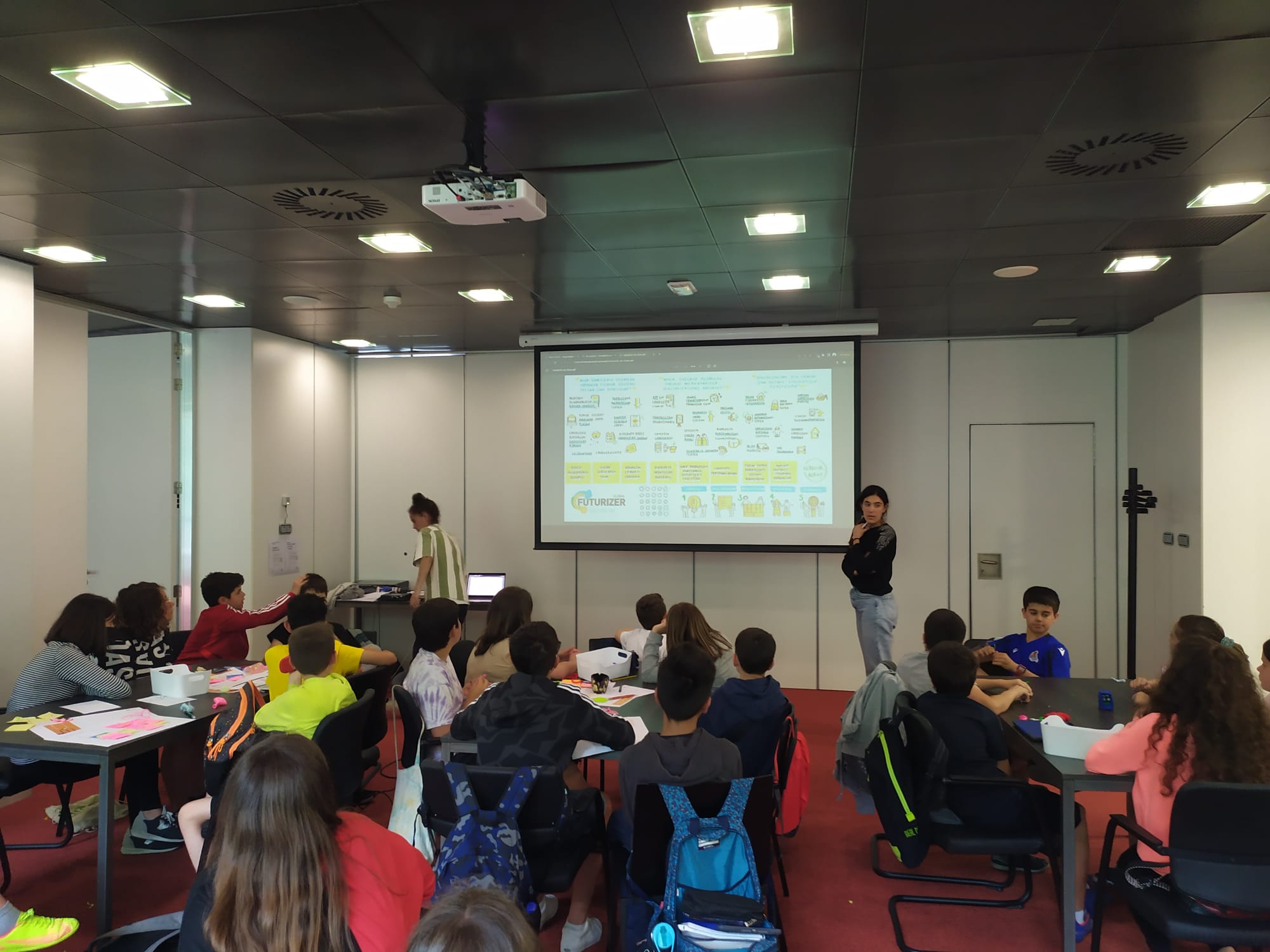 Izarra Centre ha acogido este lunes el taller Global Futurizer para niños/as y jóvenes. El alumnado del Colegio San Pelayo ha participado en esta iniciativa enfocada en fomentar la creatividad a través de ideas y reflexiones, con el objetivo final de hacer de Ermua un lugar más atractivo para la juventud.