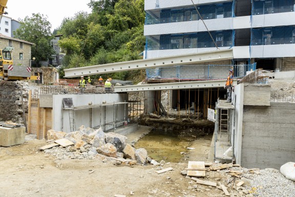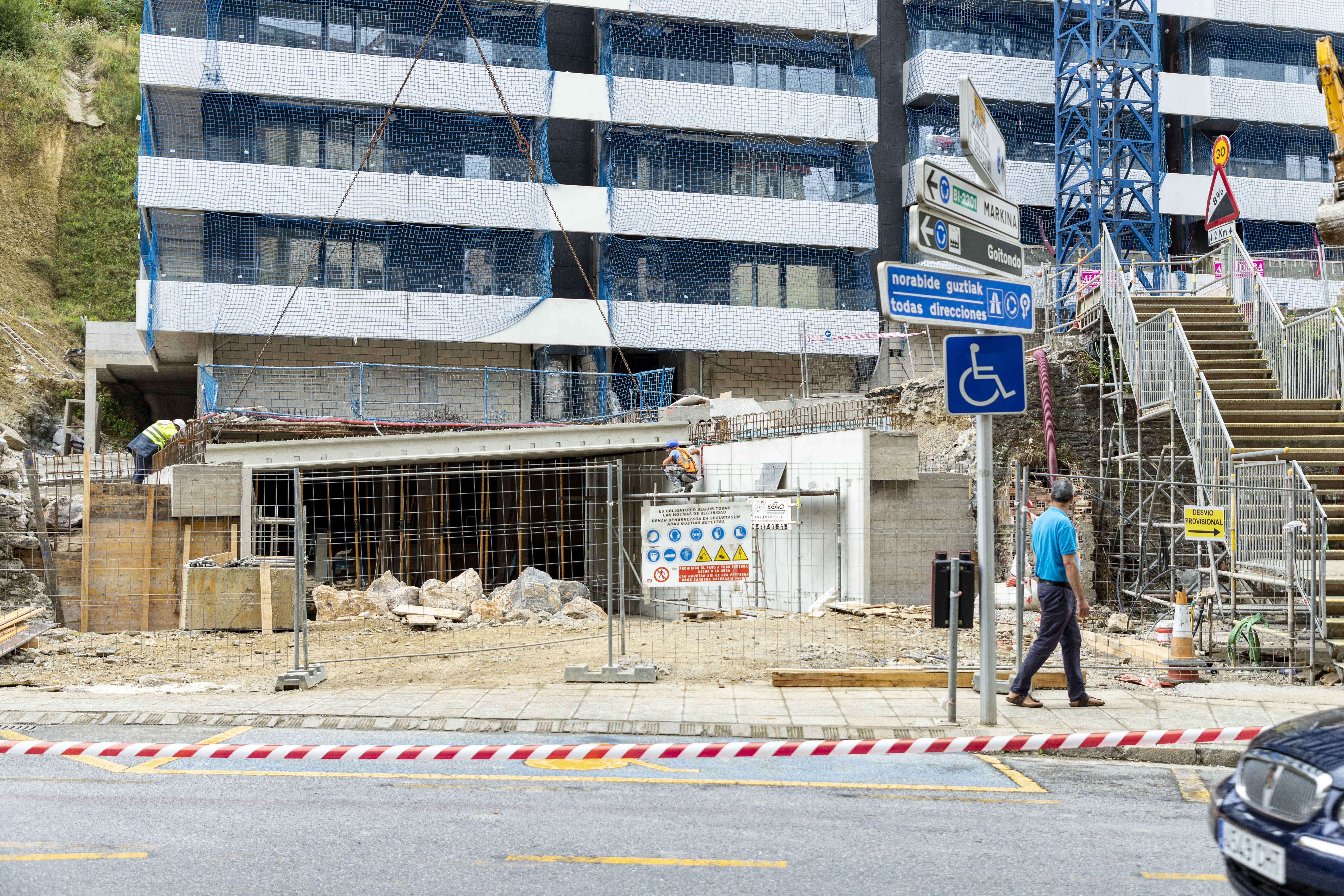 El paso inferior a las viviendas de Lomi-Power avanza según lo previsto. La obra sigue su curso y se prevé que está concluida en la fecha del 10 de septiembre. Los operarios trabajan esta semana en lo que será la cuerta del paso y firme de la bajada del puerto de Areitio. Han instalado las vigas que cerrarán el paso y serán el firme para el tráfico rodado.