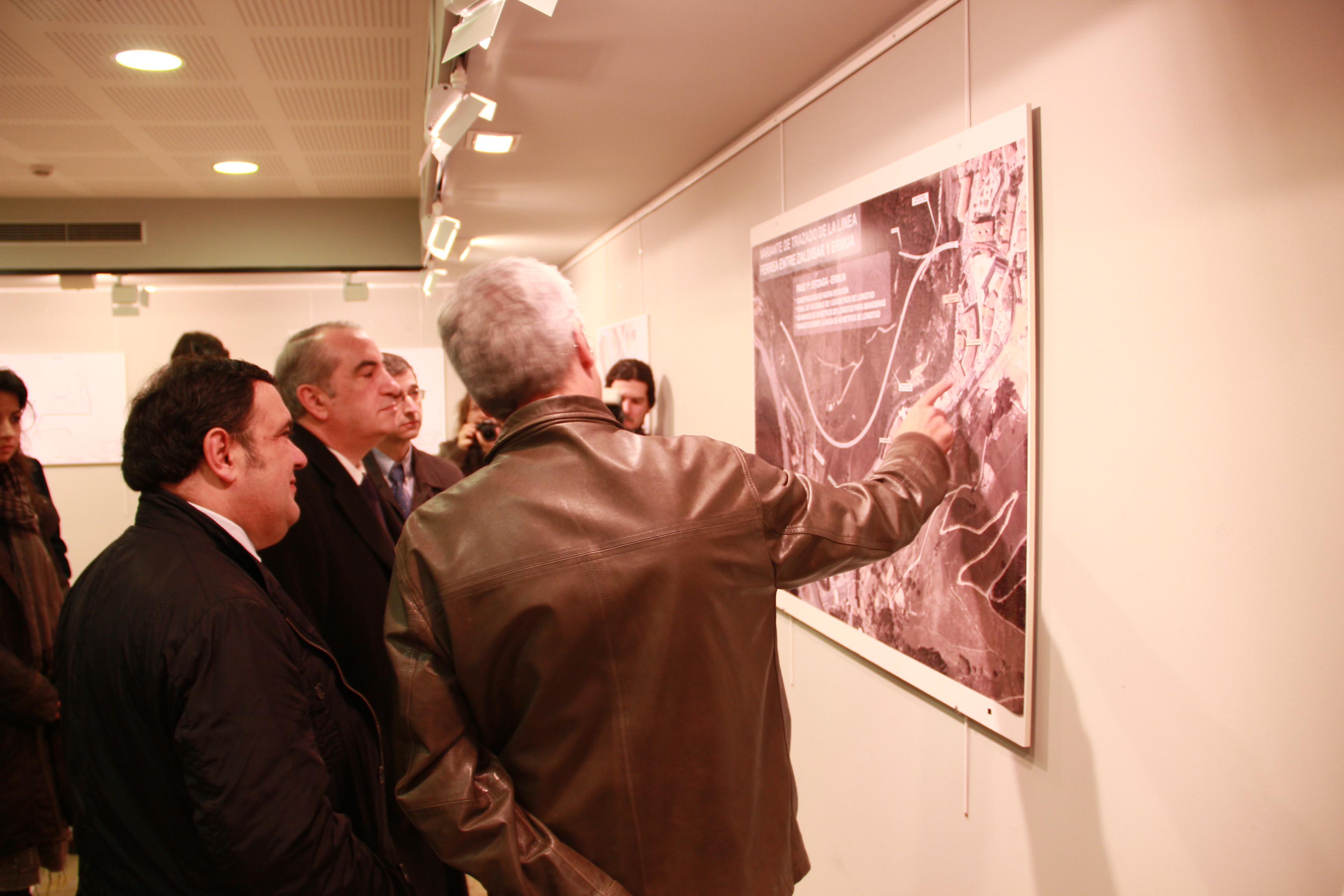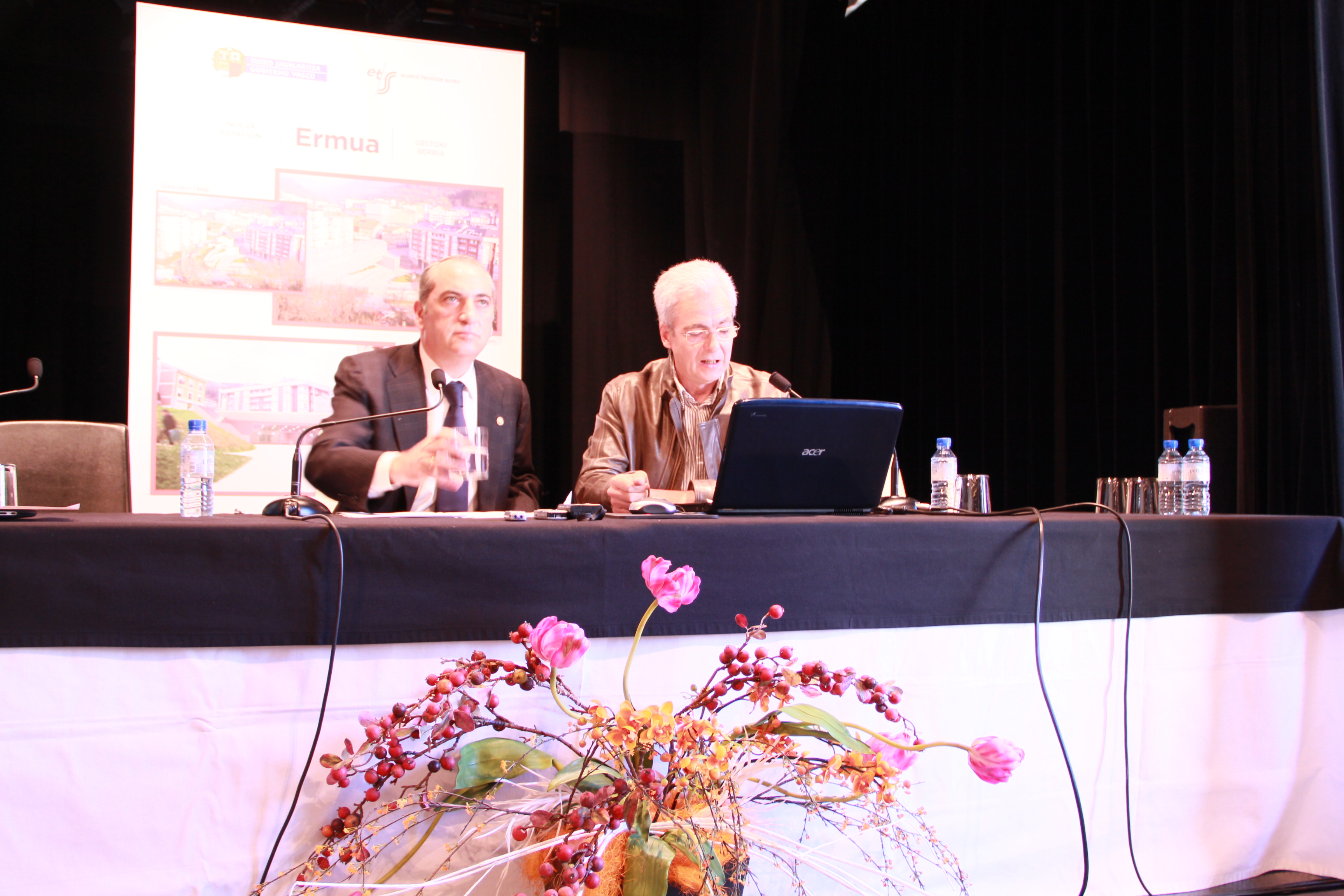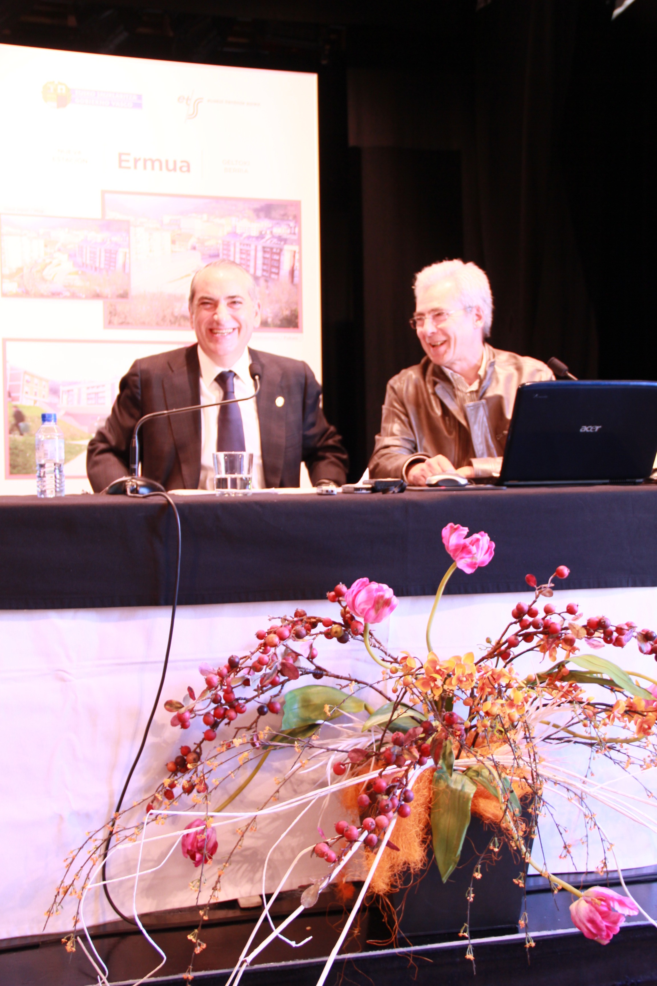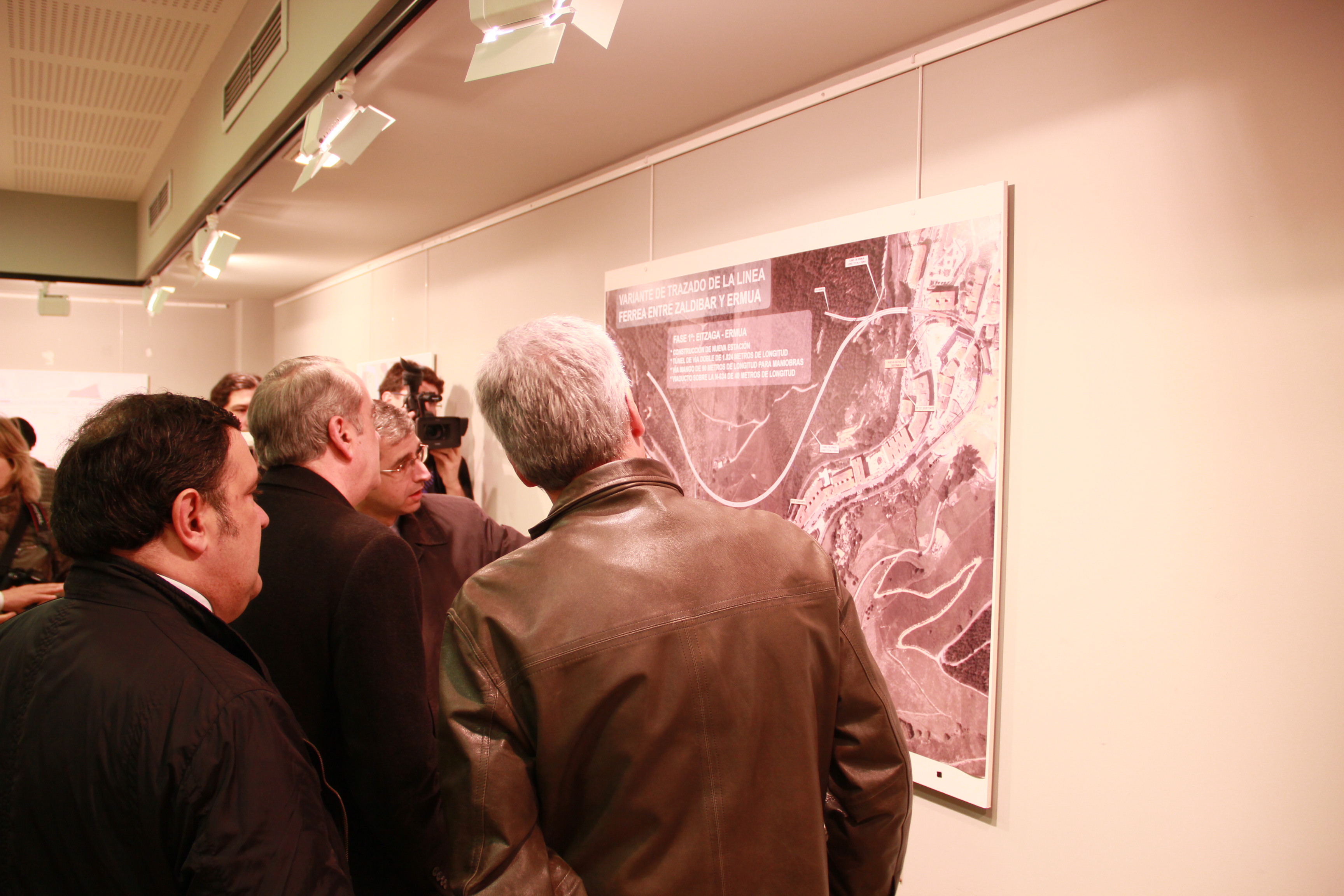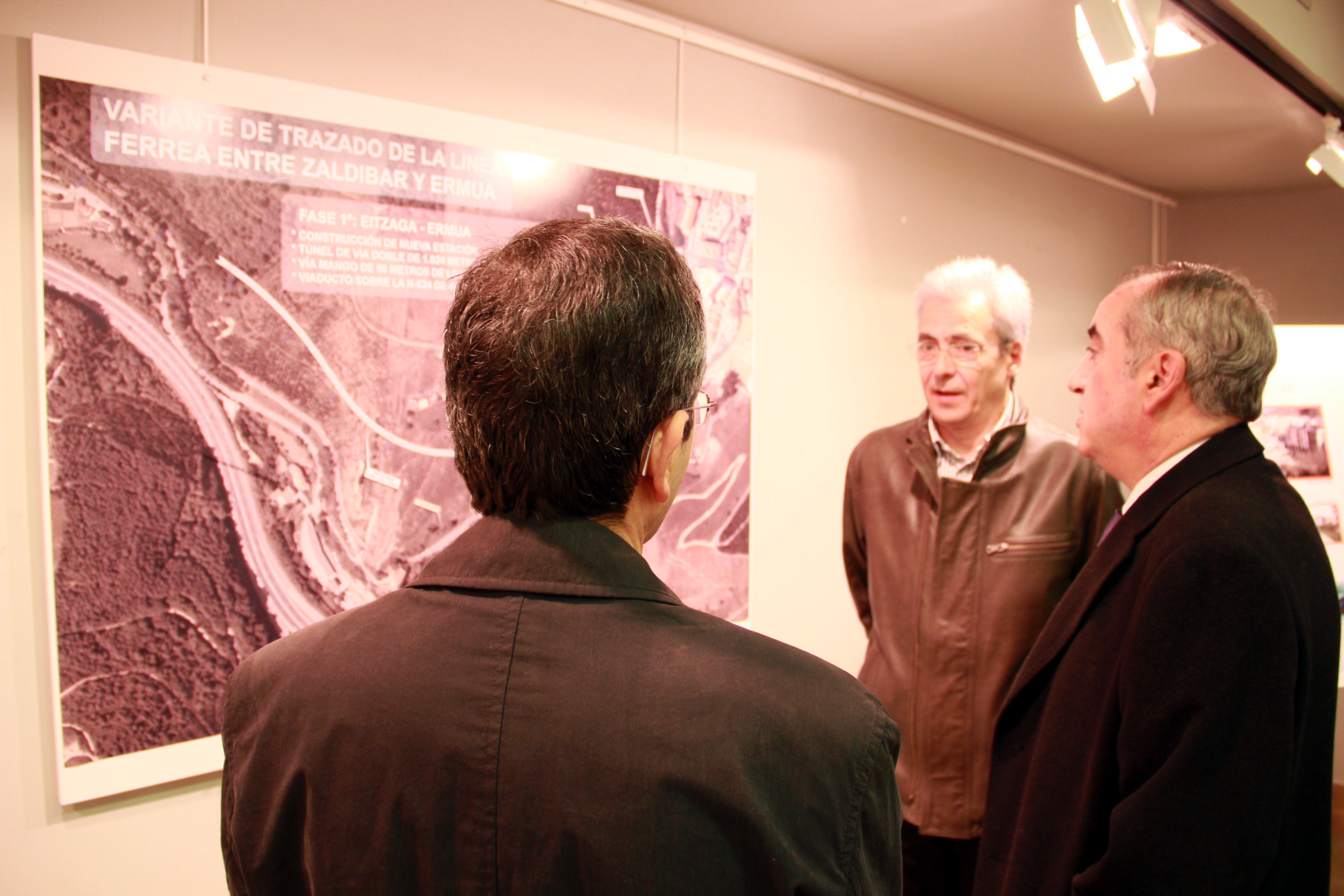 Presentación en Lobiano Kultur Gunea del proyecto de la nueva estación de tren de Ermua por parte del Consejero de vivienda, obras públicas y transportes Iñaki Arriola y el alcalde de Ermua Carlos Totorika